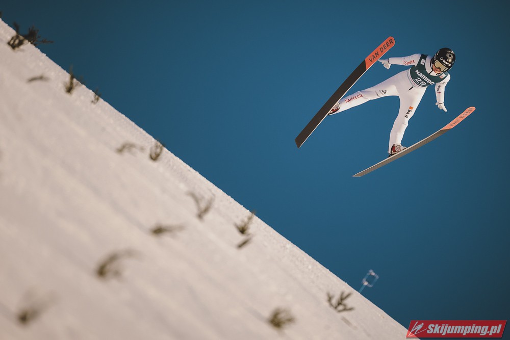 Dobrze, że poruszasz tę kwestię.Na Schlierim od najmłodszych lat, odkąd skończył 16, ciąży ogromna presja, a widzimy po naszych zawodnikach (chociażby Kamilu Stochu), że ciężko sobie jest z tym czasem poradzić. Z drugiej jednak strony myślę, że są 2 rzeczy, które pozwalają mu "in Spitze sein". Po pierwsze: widać, że on to kocha, kocha skakać, wygrywać, uwielbia wiwatujące tłumy i założę się, że robiłby to nawet gdyby mu za to nie płacili. Po drugie jest pewny siebie, po prostu wie, że jest najlepszy.