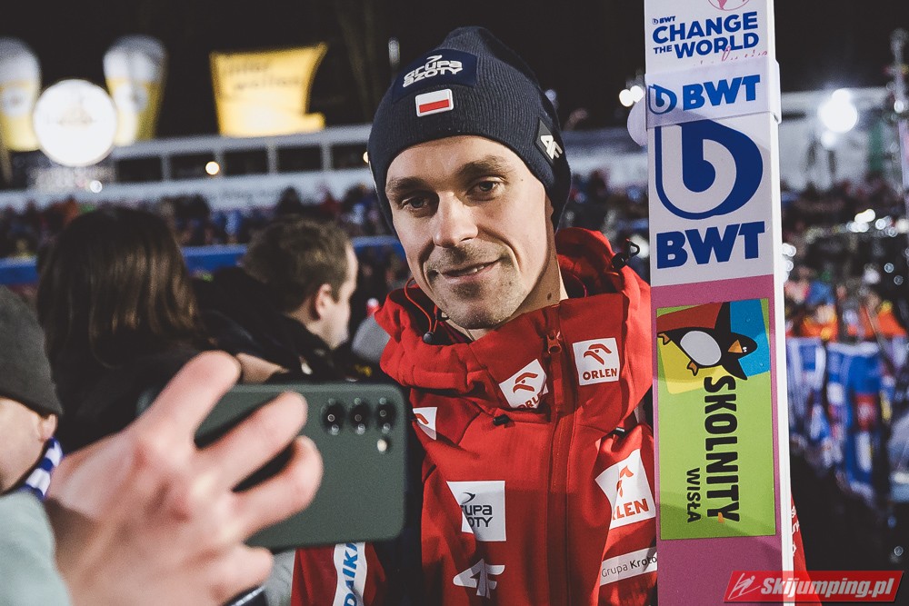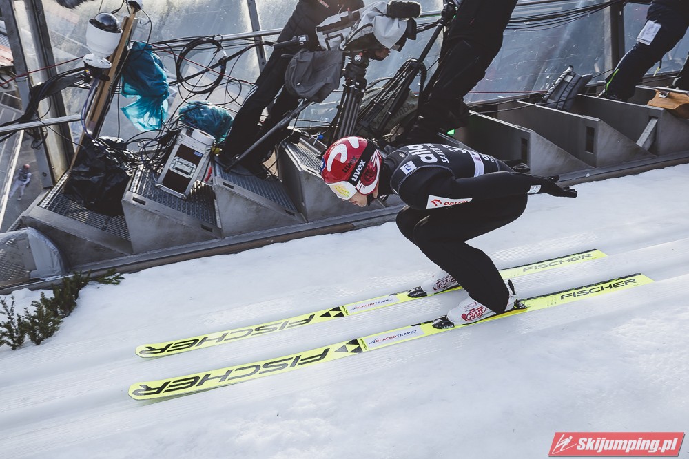 „Ale za to niedziela” śpiewali zazwyczaj kibicie pod Wielką Krokwią. Niedziela w tym sezonie zamieniła się jednak z sobotą… I być może to właśnie przesądziło nieco o wyniku, ale po kolei. Kwalifikacje do drugiego zakopiańskiego konkursu osłabiły nieco wiarę w sukces naszych Orłów, bo sprawiedliwie trzeba przyznać, że bliżej im było do kiwi, a i wśród zgromadzonych zaczęły się szepty, że podobno nasi skakali bez nart. Mimo wystawienia grupy krajowej, w skład której wchodziło aż 12 reprezentantów Polski, nie zapomnieliśmy o naszej narodowej cesze, jaką bez wątpienia jest gościnność, przez co do konkursu zakwalifikował się tylko jeden reprezentant – Kamil Stoch. Małysz, dzięki wysokiemu miejscu w klasyfikacji generalnej, kwalifikować się nie musiał. Sam konkurs był jednak kosmiczny, a ósma belka, na której ustalono rozbieg skoczni, nie przeszkodziła kibicom w obejrzeniu wspaniałych rekordowych skoków. Pierwszy zademonstrował swoje możliwości piątkowy zwycięzca – Gregor Schlierenzauer, który lotem na 140 metr wyrównał siedmioletni już rekord Svena Hannawalda. W przeciwieństwie do Hanniego Schlieri ustał swój skok z telemarkiem, co sprawiło, że mogliśmy pierwszy raz w historii obiektu zobaczyć ponad 150 punktową notę za jeden skok. Nie był to jednak koniec emocji, bowiem na belce startowej wciąż czekał na swój skok jeden z najbardziej utytułowanych skoczków dekady, podwójny złoty medalista z Salt Lake City, mistrz i wicemistrz Świata z Sapporo , aktualny lider generalnej klasyfikacji – Simon Ammann. Po ponad 40 mroźnych sekundach, które spędził na belce, ruszył w dół rozbiegu, wybił się i… wylądował jeszcze dalej! Dokładnie zmierzona odległość oczom zdumionych kibiców wyświetliła 140,5 metra. Nowy rekord skoczni! Simon Ammann, który jeszcze kilka dni przed konkursem wahał się, czy przyjechać do Zakopanego, odleciał w pierwszej serii najdalej w historii konkursów na Krokwi. Noty za styl okazały się jednak dla Szwajcara bezlitosne i z kilkupunktową stratą zajmował drugie miejsce. W serii finałowej nic już miało nie ulec zmianie. Tak było do czasu, gdy na belce startowej zasiadł Adam Małysz. Wyśmienity skok na odległość 134 metrów dał naszemu zawodnikowi notę łączną ponad 270 punktów. Niestety, nie wystarczyła ona na podium, ale Orzeł z Wisły także i tego dnia zajął jedno z najlepszych miejsc w sezonie i umocnił się w dziesiątce Pucharu Świata. Lepszą odległość od Polaka uzyskał już tylko Gregor Schlierenzauer, który zgodnie z przewidywaniami okazał się sobotnim tryumfatorem na Krokwi. Bez wątpienia 31. zwycięstwo ledwie dwudziestoletniego Austriaka to wynik godny Księgi Rekordów Guinnessa. Jeśli weźmiemy pod uwagę fakt, że Latający Fin – Matti Nykaenen – w jego wieku miał dopiero 13 zwycięstw, możemy już teraz zacząć gdybać, ile jeszcze konkursów wygra Austriak. Nas jednak ucieszyło to, że na trzy tygodnie przed Igrzyskami Adama Małysza od najlepszych dzielą już nie metry, a noty sędziowskie. Wierzymy, że właśnie w Vancouver Orzeł z Wisły dorówna do swoich rywali i będzie mógł walczyć o kolejne olimpijskie kruszce.