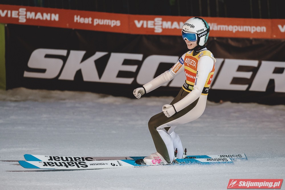 Nasz reprezentant skakał bardzo równo, w pierwszej serii uzyskał 123 metry, a w finale lądował pół metra dalej i zdołał o 0,2 punktu wyprzedzić Andersa Jacobsena. Norweg był piąty na półmetku zawodów, ale najdłuższy skok w finale - 126,5 metra pozwolił mu się przesunąć na najniższy stopień podium.