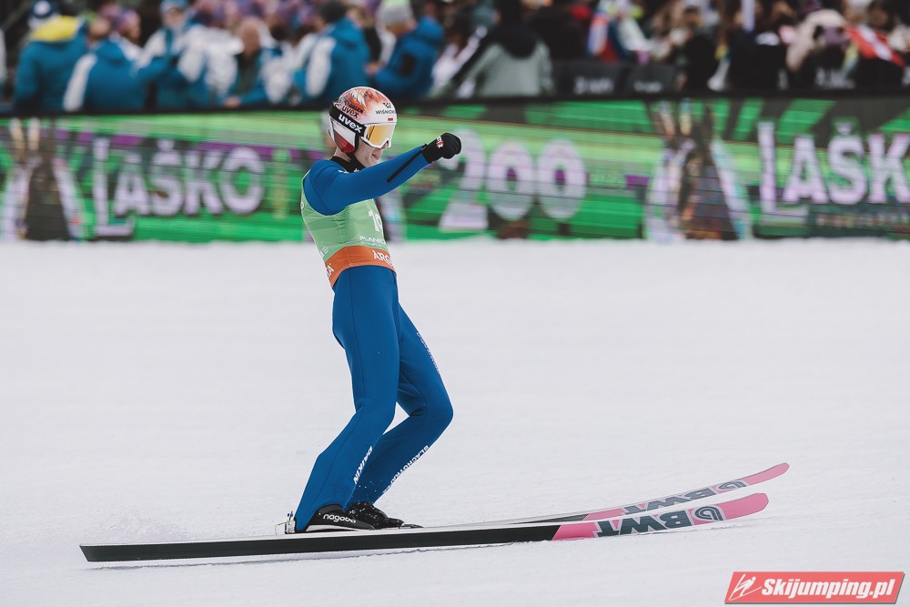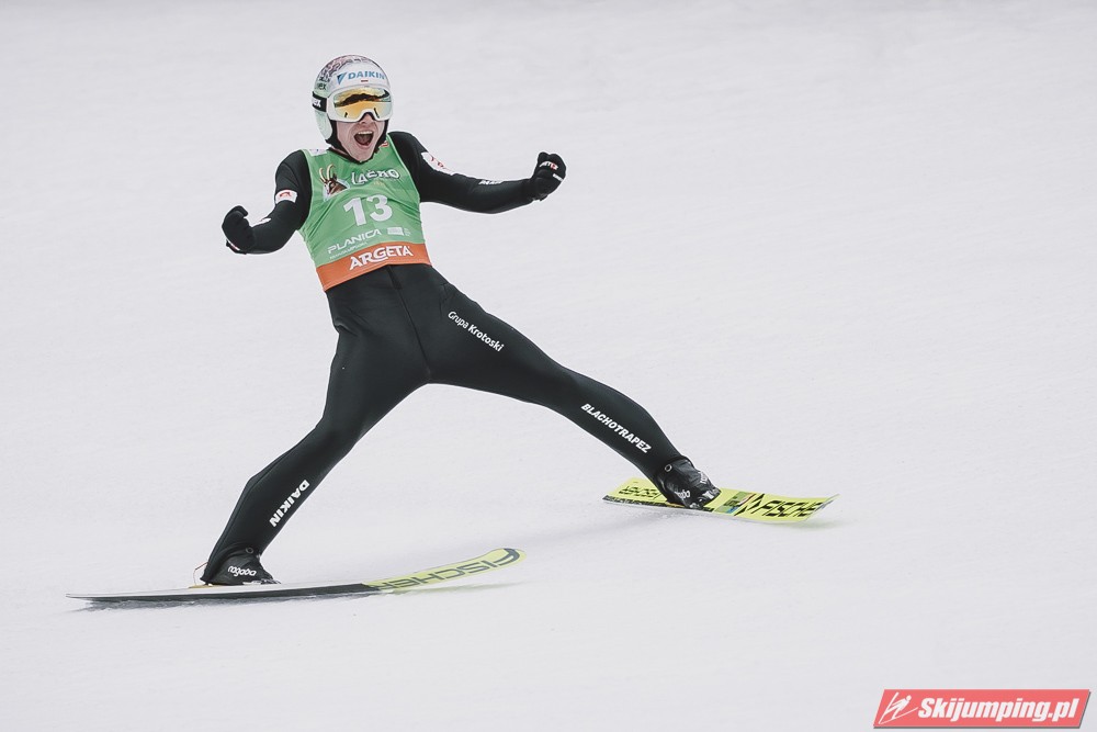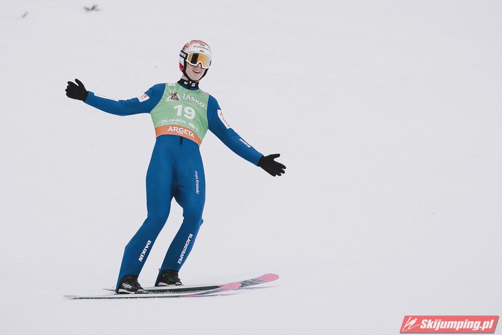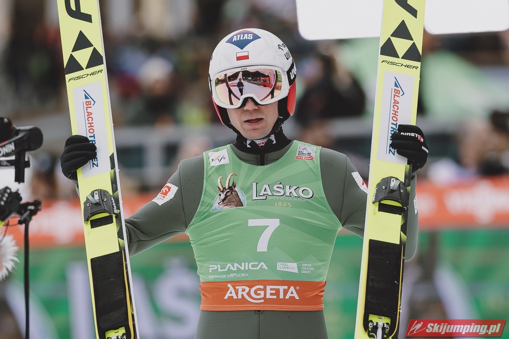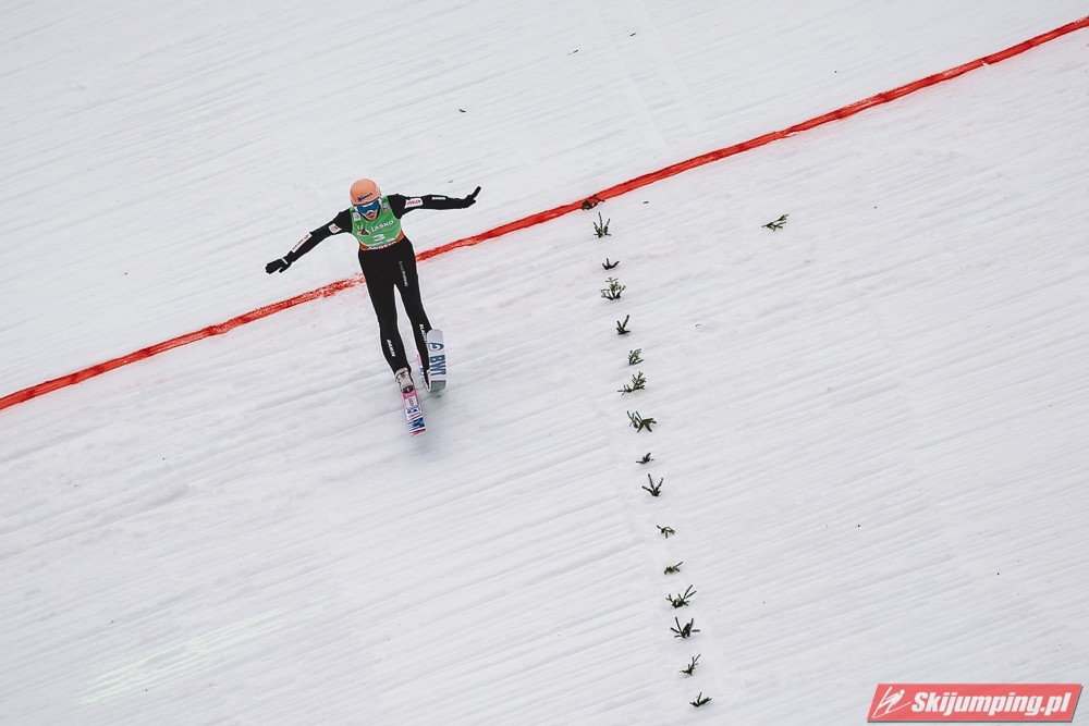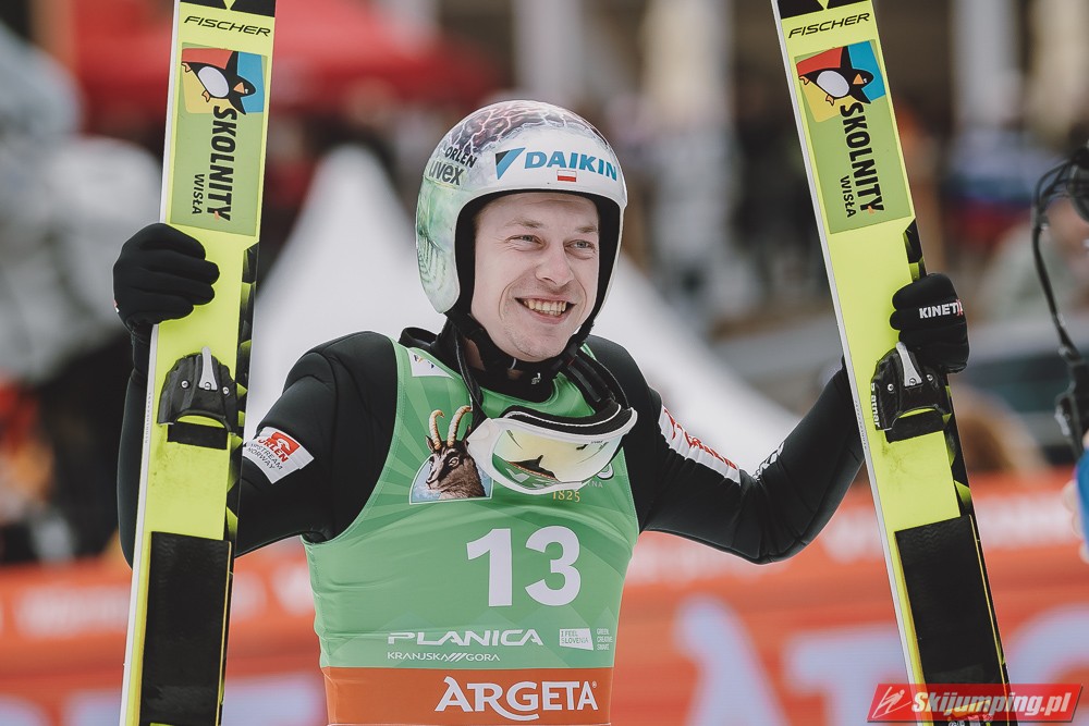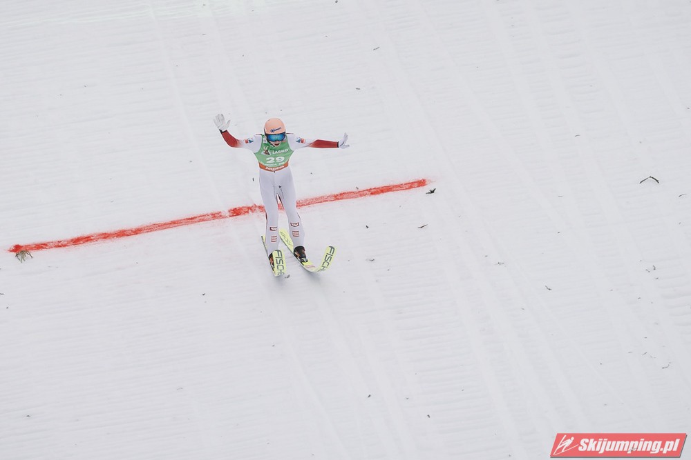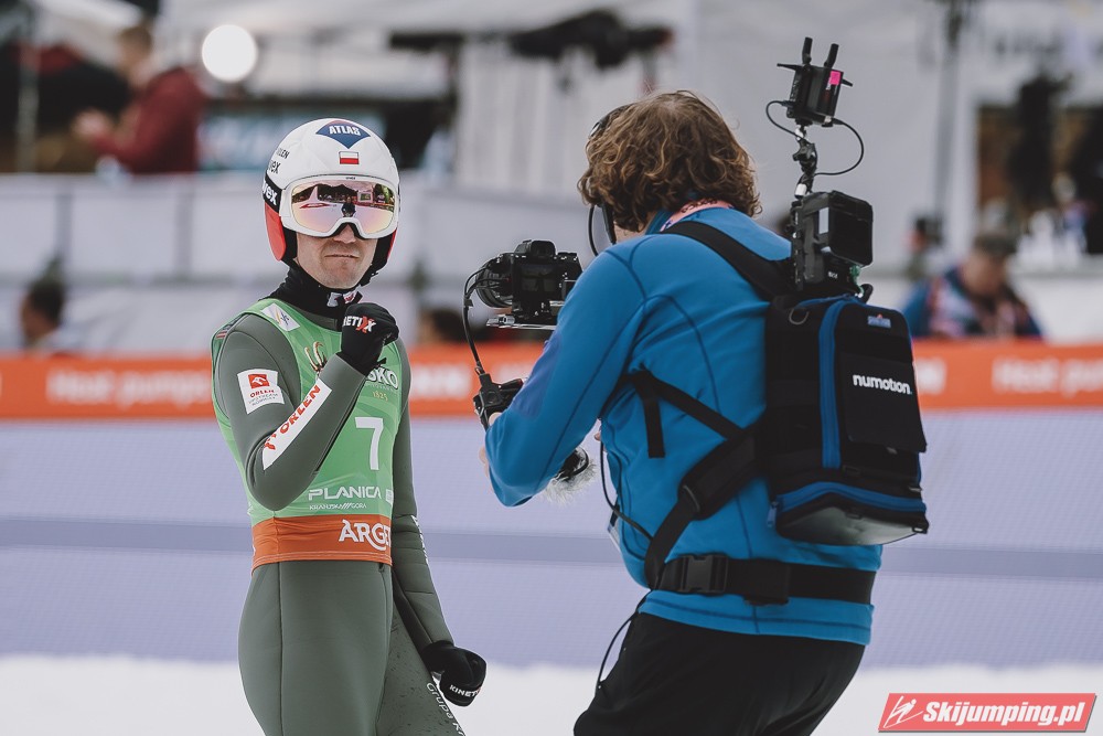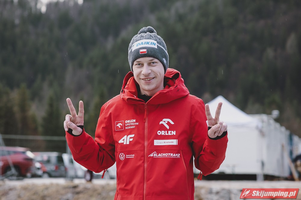 Ważne, że pokazuje, że potrafi daleko skakać. Szkoda, że nie było dane nam zobaczyć tego skoku, ale podejrzewam że lot przypominał ten z lata, czyli wysoki tor, nie pasywny jak dotąd w zimie. To jest w tej chwili dla niego najważniejsze, żeby uwierzył że może skakać daleko. Teraz na Adama czekamy, ale szykuję się ciekawy konkurs, oby z POLAKAMI w roli głównej :).