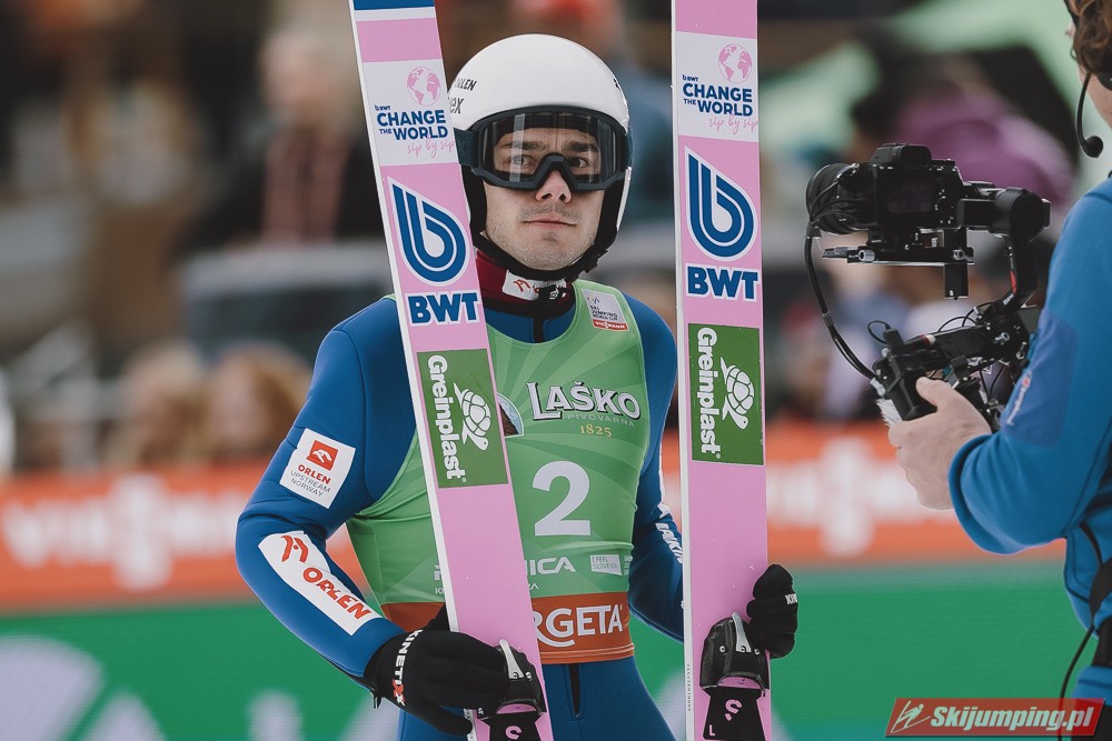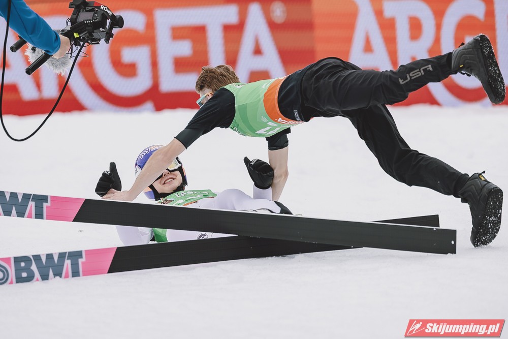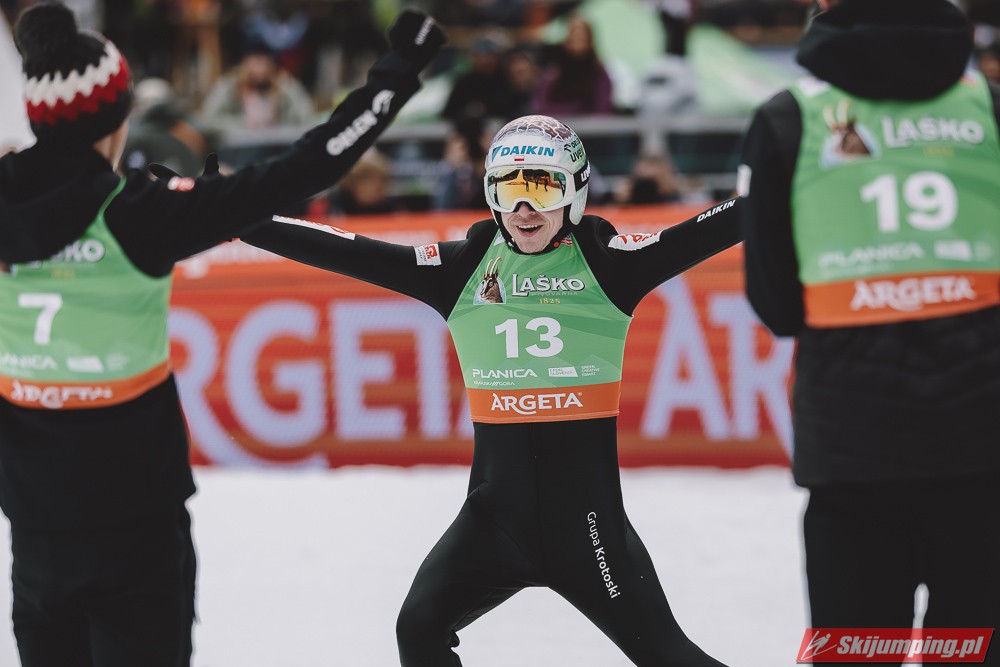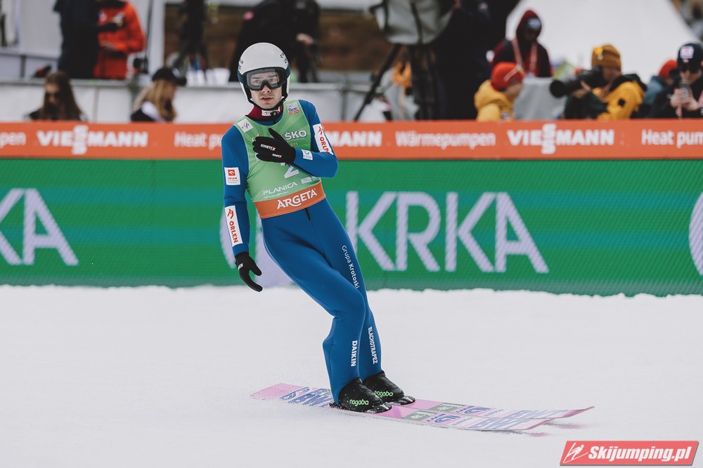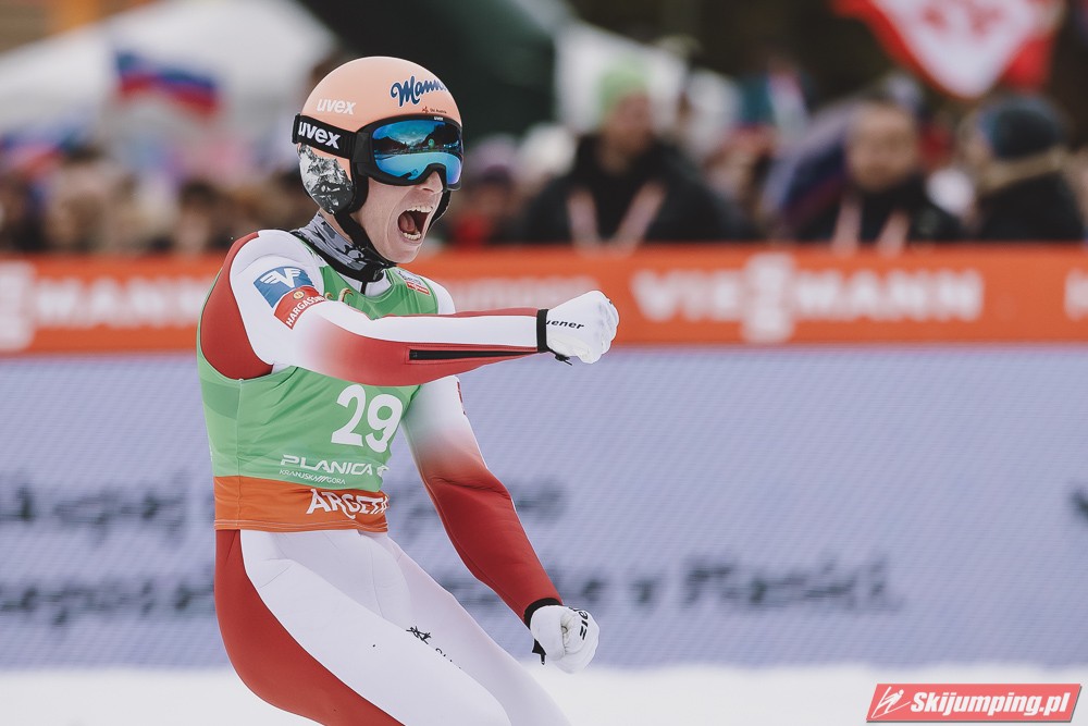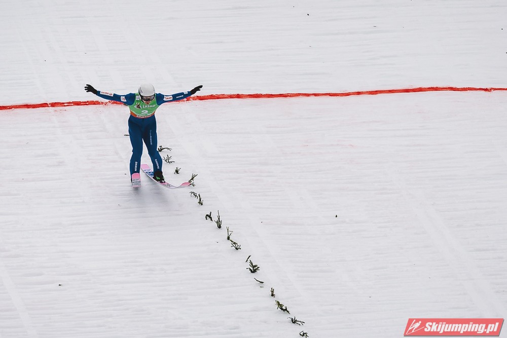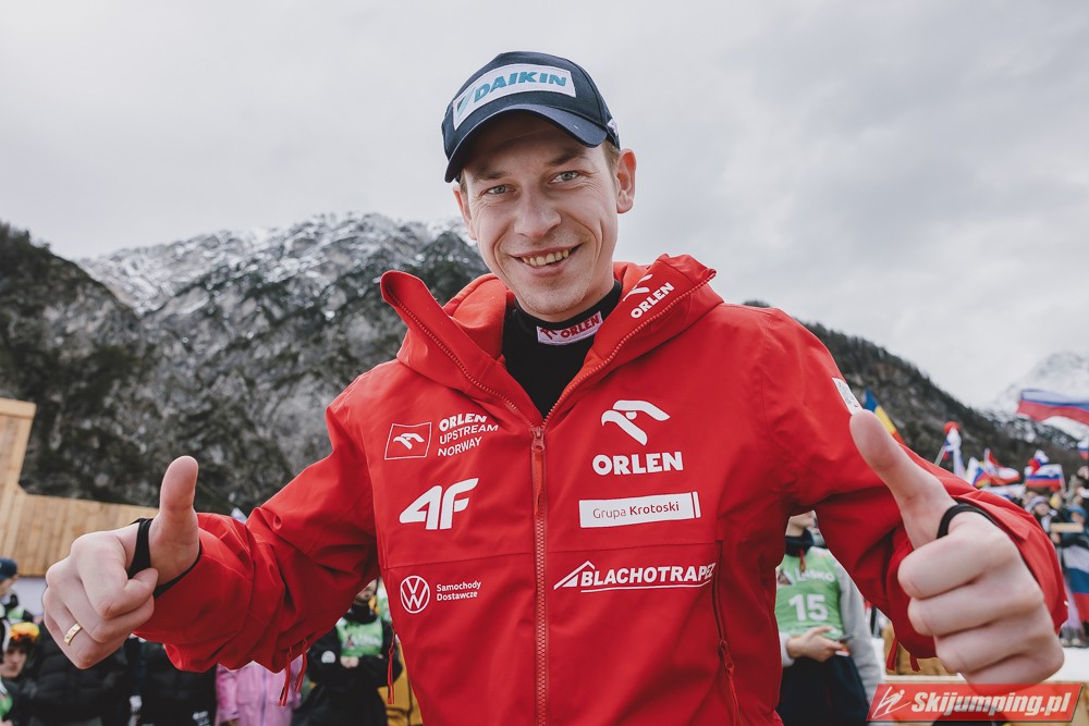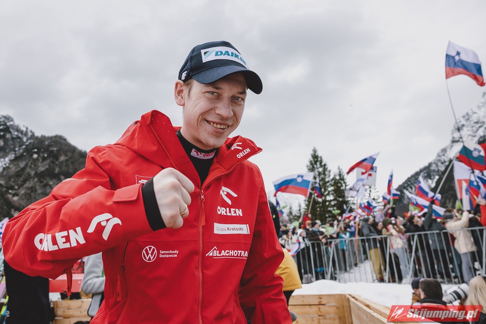 Ważne, że pokazuje, że potrafi daleko skakać. Szkoda, że nie było dane nam zobaczyć tego skoku, ale podejrzewam że lot przypominał ten z lata, czyli wysoki tor, nie pasywny jak dotąd w zimie. To jest w tej chwili dla niego najważniejsze, żeby uwierzył że może skakać daleko. Teraz na Adama czekamy, ale szykuję się ciekawy konkurs, oby z POLAKAMI w roli głównej :).
