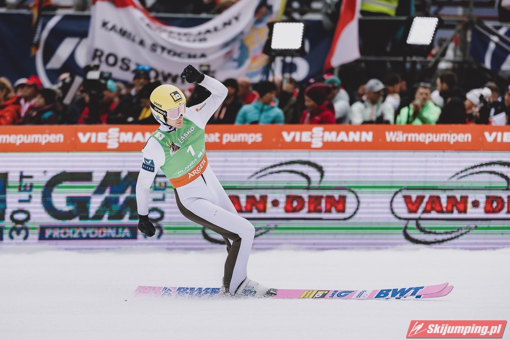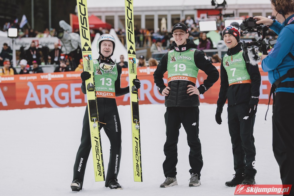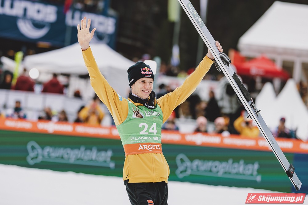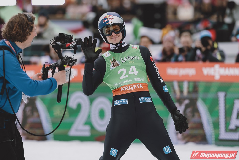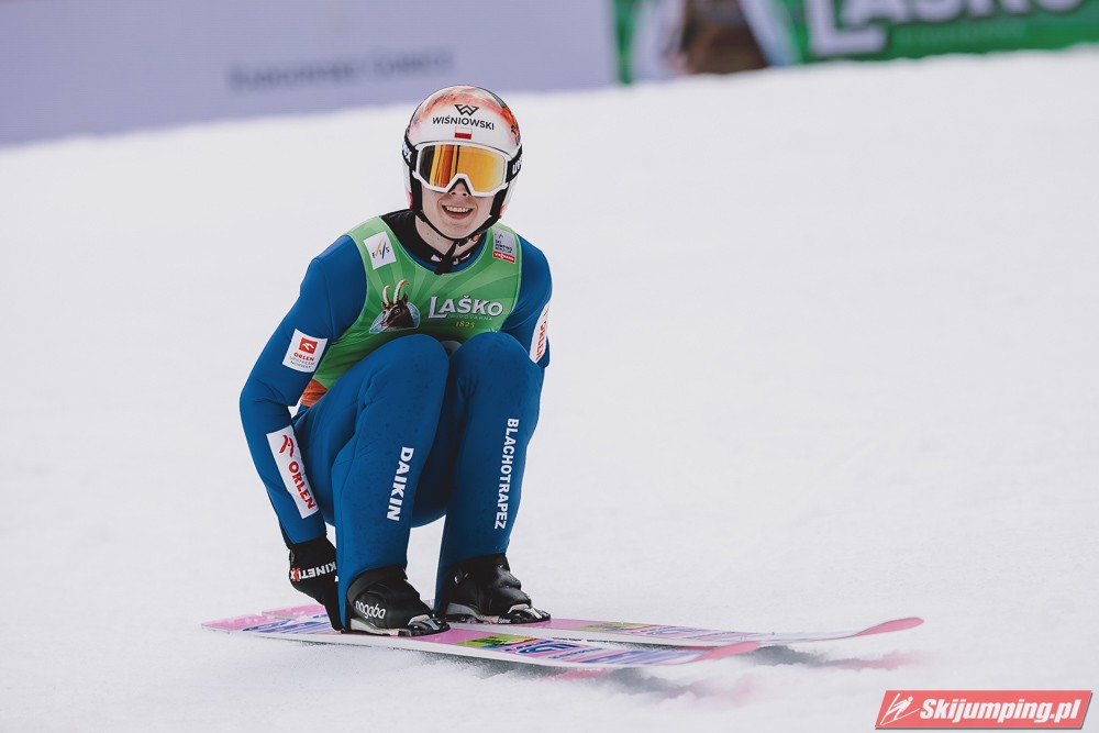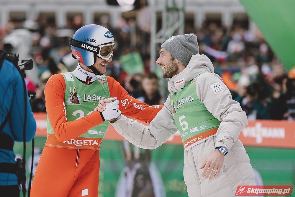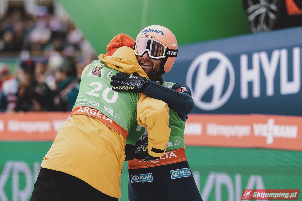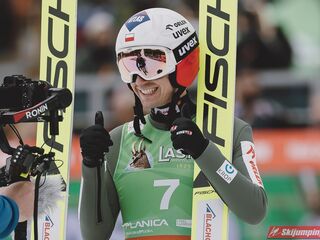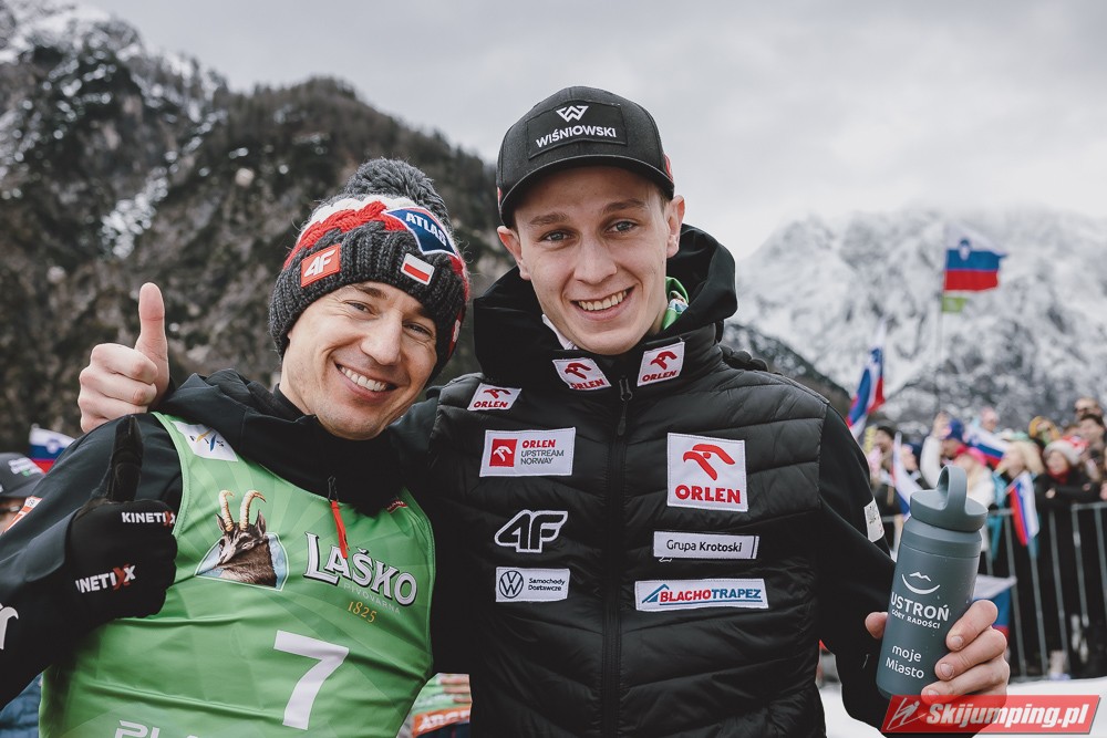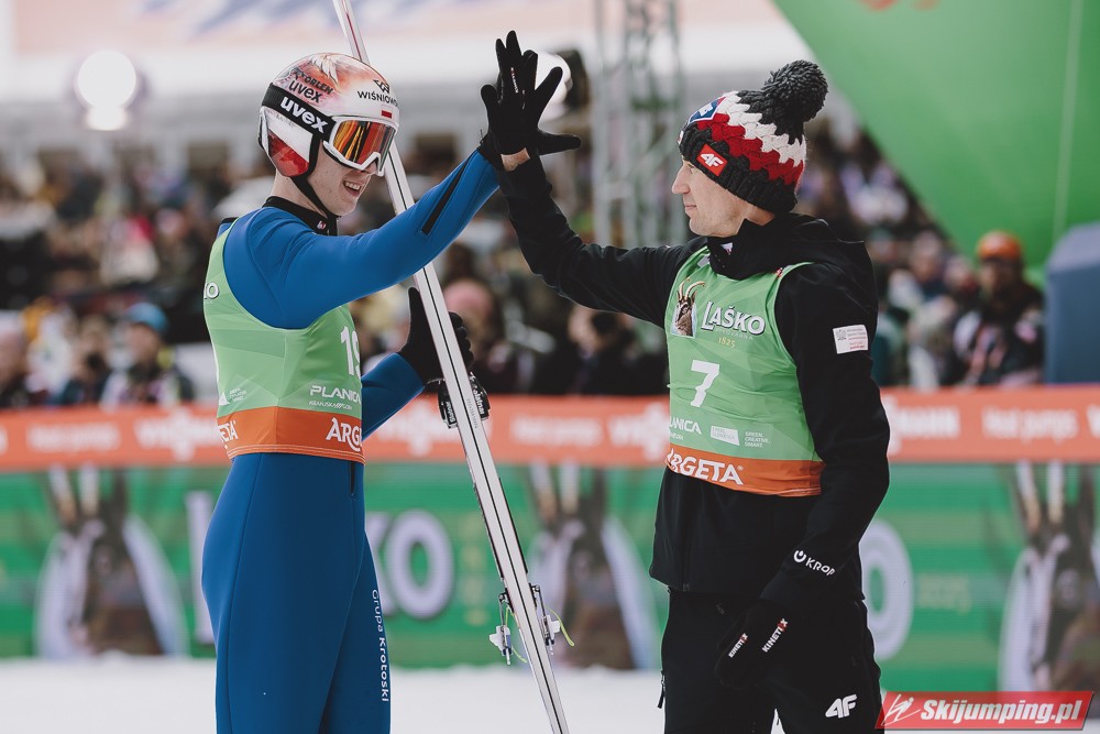 Ważne, że pokazuje, że potrafi daleko skakać. Szkoda, że nie było dane nam zobaczyć tego skoku, ale podejrzewam że lot przypominał ten z lata, czyli wysoki tor, nie pasywny jak dotąd w zimie. To jest w tej chwili dla niego najważniejsze, żeby uwierzył że może skakać daleko. Teraz na Adama czekamy, ale szykuję się ciekawy konkurs, oby z POLAKAMI w roli głównej :).