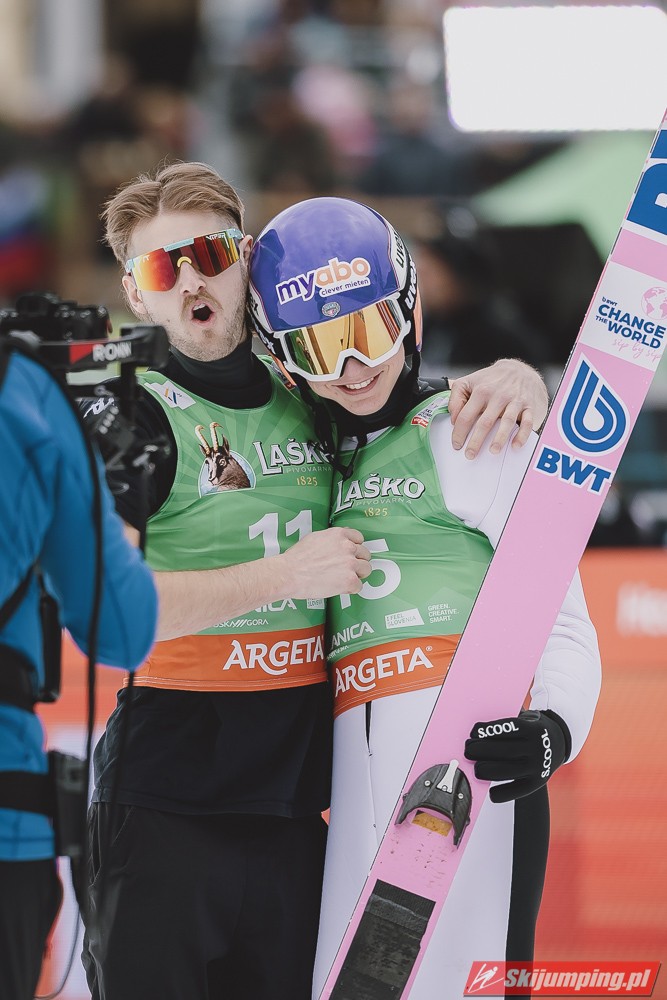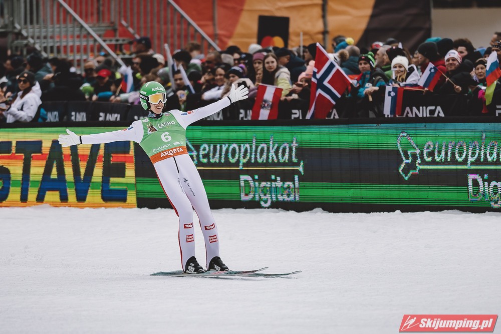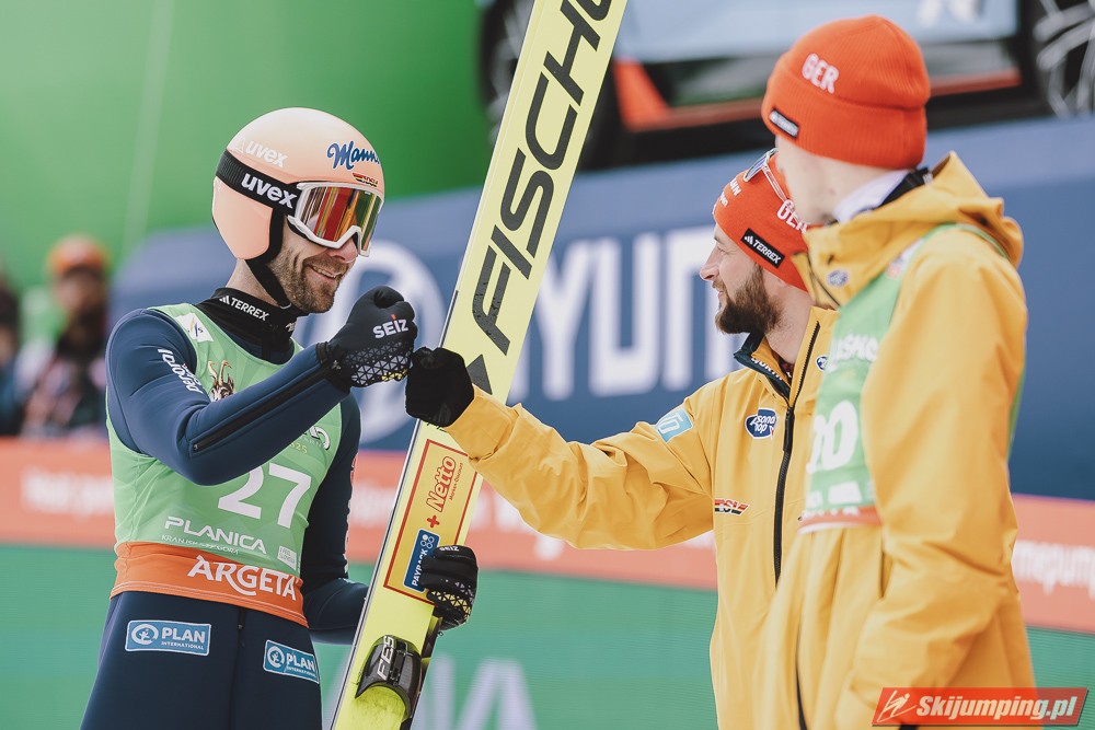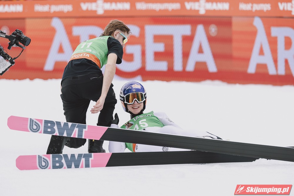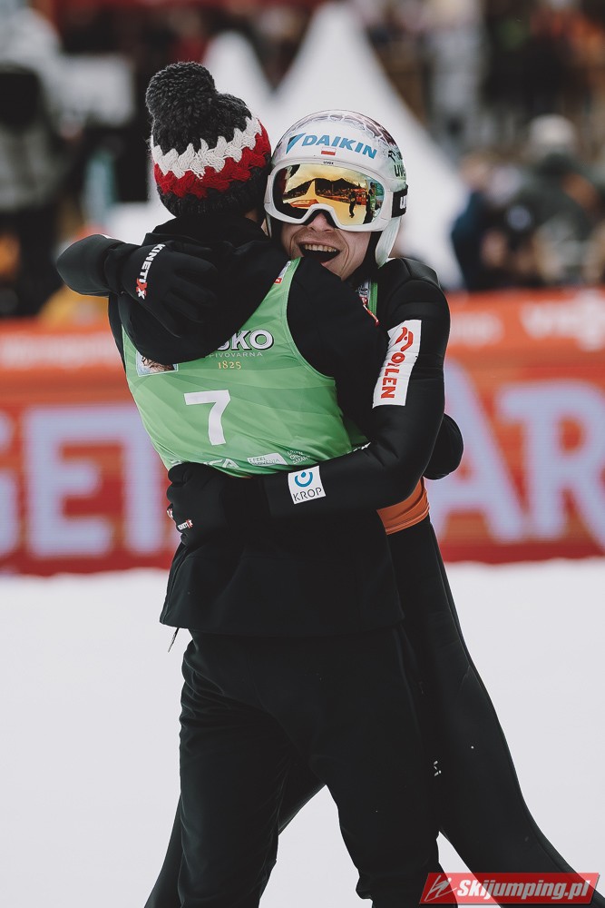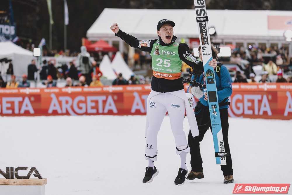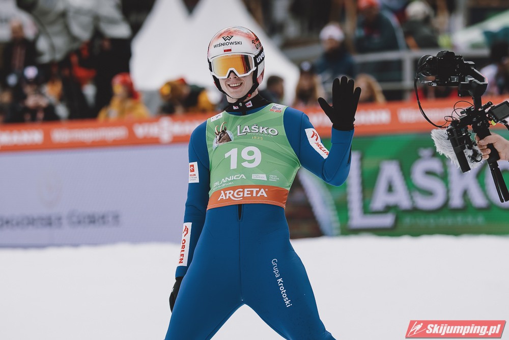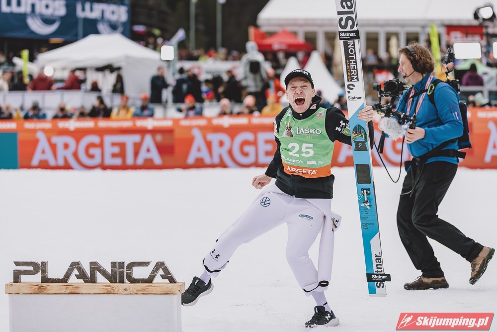 Ważne, że pokazuje, że potrafi daleko skakać. Szkoda, że nie było dane nam zobaczyć tego skoku, ale podejrzewam że lot przypominał ten z lata, czyli wysoki tor, nie pasywny jak dotąd w zimie. To jest w tej chwili dla niego najważniejsze, żeby uwierzył że może skakać daleko. Teraz na Adama czekamy, ale szykuję się ciekawy konkurs, oby z POLAKAMI w roli głównej :).