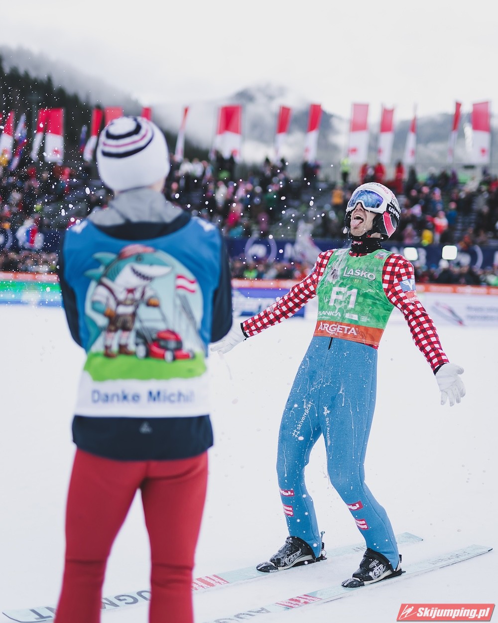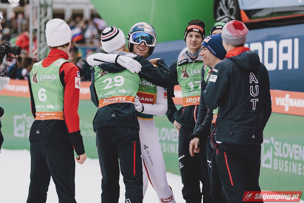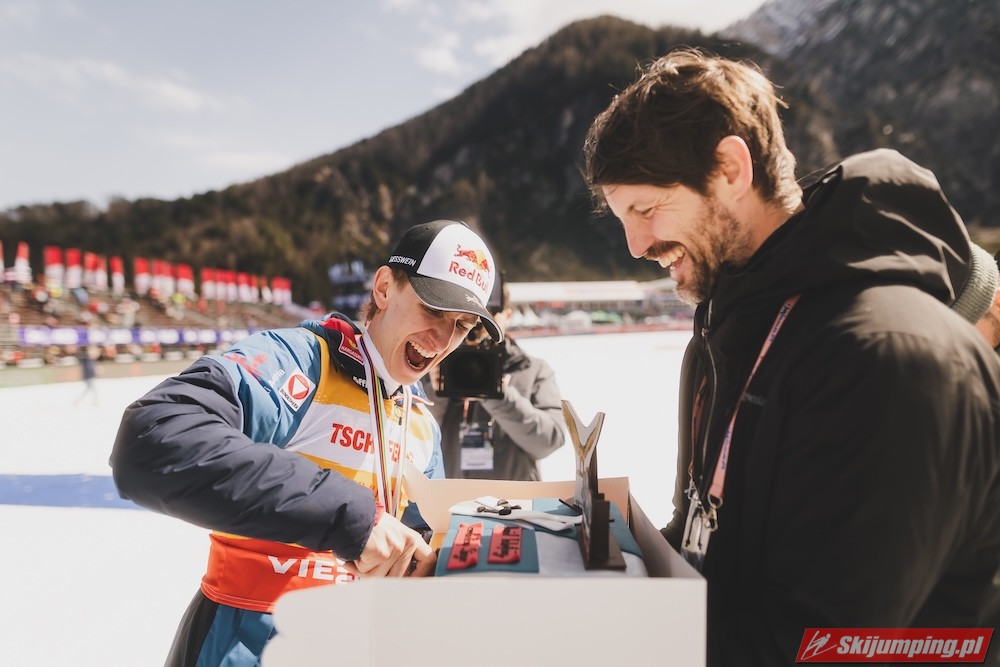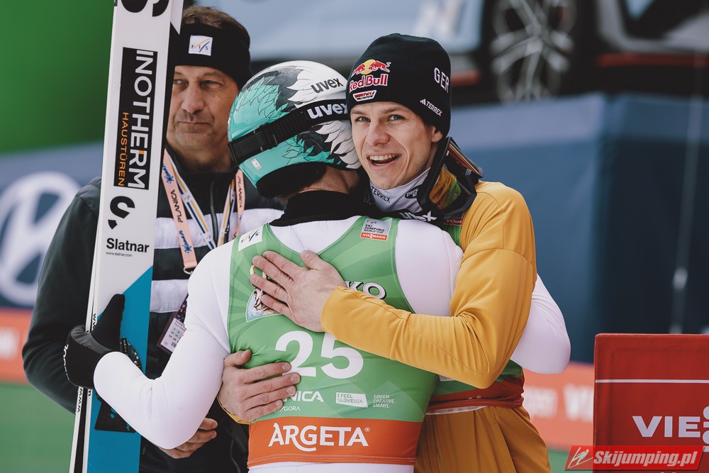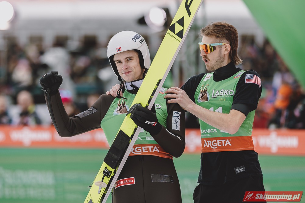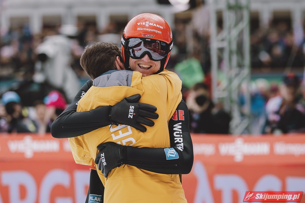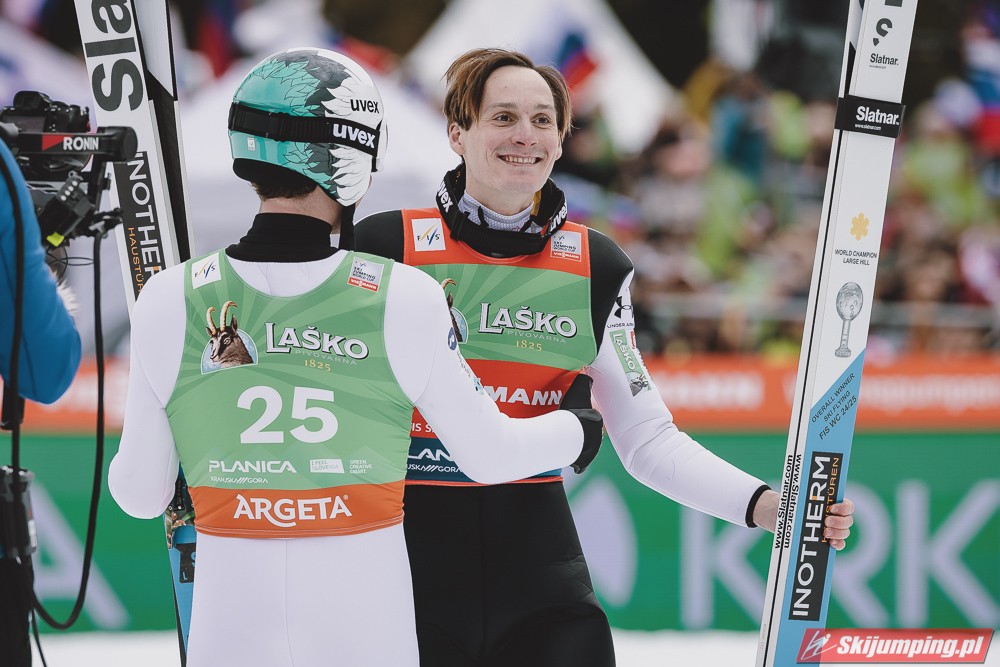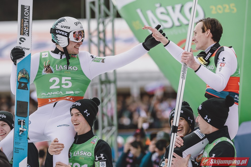 Ważne, że pokazuje, że potrafi daleko skakać. Szkoda, że nie było dane nam zobaczyć tego skoku, ale podejrzewam że lot przypominał ten z lata, czyli wysoki tor, nie pasywny jak dotąd w zimie. To jest w tej chwili dla niego najważniejsze, żeby uwierzył że może skakać daleko. Teraz na Adama czekamy, ale szykuję się ciekawy konkurs, oby z POLAKAMI w roli głównej :).