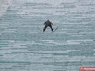 Jacobsen skoczył 129.5m. Gdyby to był konkurs/kwali to byłby przed Stochem bo miałby wyższe noty. A przecież obaj zawodnicy w powietrzu lecą nienagannie. Lądowania też miają dobre.