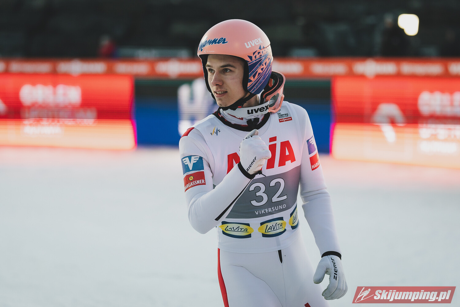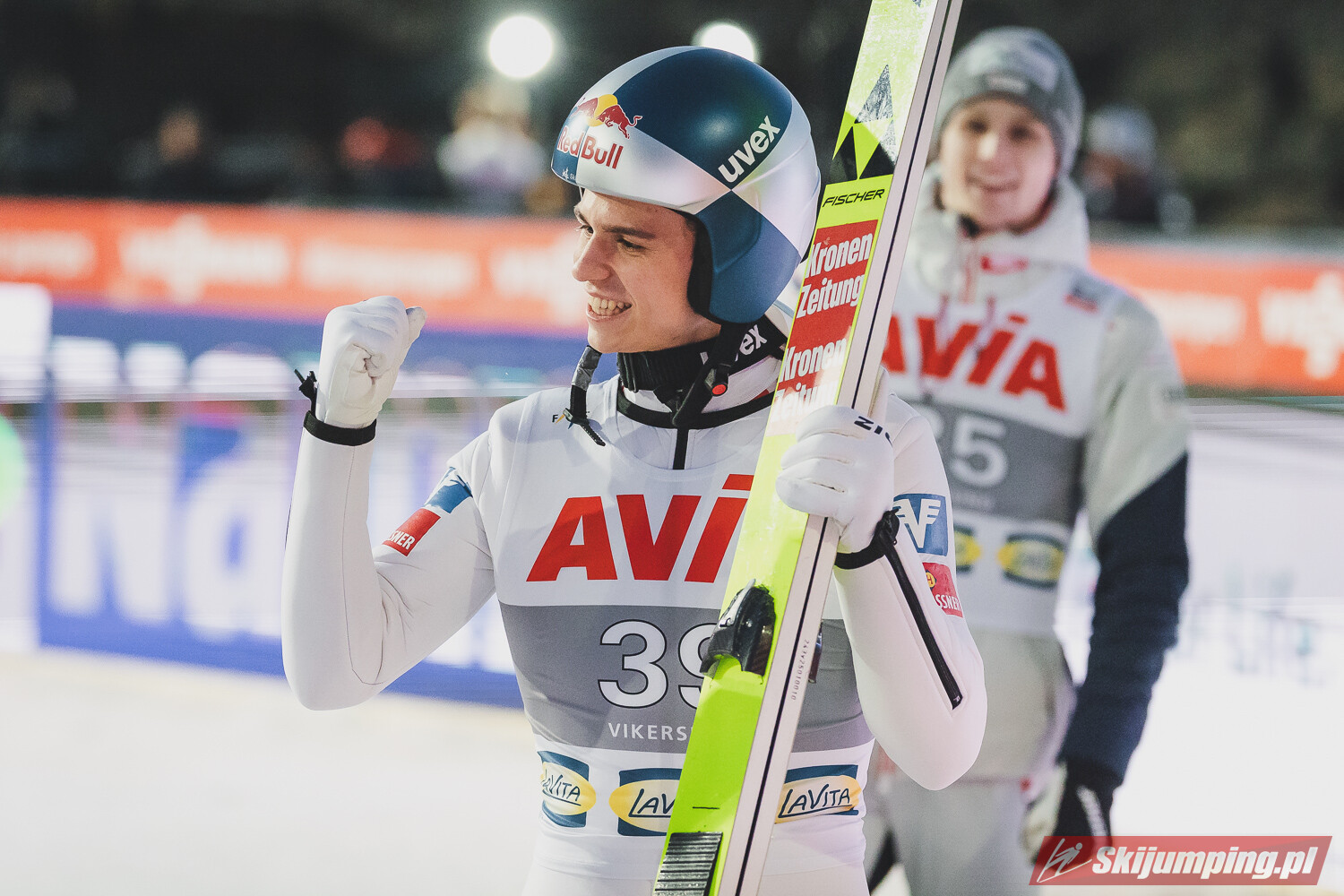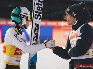 Drugie miejsce, ze stratą 1,8 punktu zajął Lukas Hlava, Czech lądował równo metr bliżej od naszego reprezentanta. Na świetnym, trzecim miejscu po skoku na 126 metrów uplasował się Maciej Kot gromadząc 127,7 punktu. Tuż za młodszym z braci Kotów znalazł się utytułowany Jakub Janda (128,5 metra), a na piątej pozycji kwalifikacje zakończył kolejny z Polaków - Bartłomiej Kłusek (128 metrów).