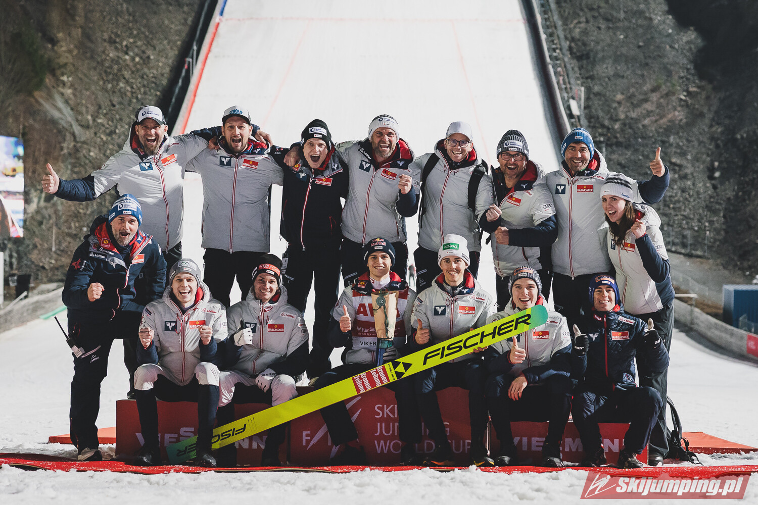 O podium będzie walczyć moim zdaniem 5 drużyn . Austria, Polska, Niemcy, Japonia i Czechy co są lekceważone ale w kwalifikacjach byli na 2 i 4 miejscu a Cikl i Vaculik też skaczą nieźle. Co do konkretnych wyników. Jedyną drużyną co może pokonać Austriaków są Polacy. Szanse oceniam 65%-35% dla Austrii. Z kolei nas mogą pokonać tylko Austriacy i Niemcy. Z kolei z Niemcami szanse mają i Japończycy i Czesi ale Ci ostatni nie za duże.