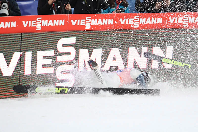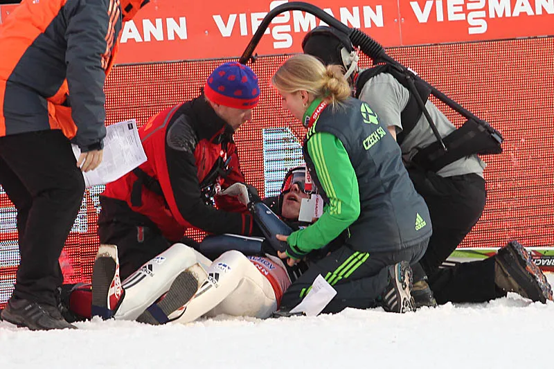 27-latek w drugiej serii piątkowych zawodów oddał skok mierzący 167 metrów. Gdy wydawało się, że do swojej próby przygotowywać może się już kolejny skoczek będący na górze obiektu HS 205, rekordzista Czech w długości lotu przeżył dramatyczne chwile. W końcowej fazie hamowania wypięła mu się prawa narta, przez co z ogromną siłą uderzył w elektroniczną bandę okalającą zeskok.