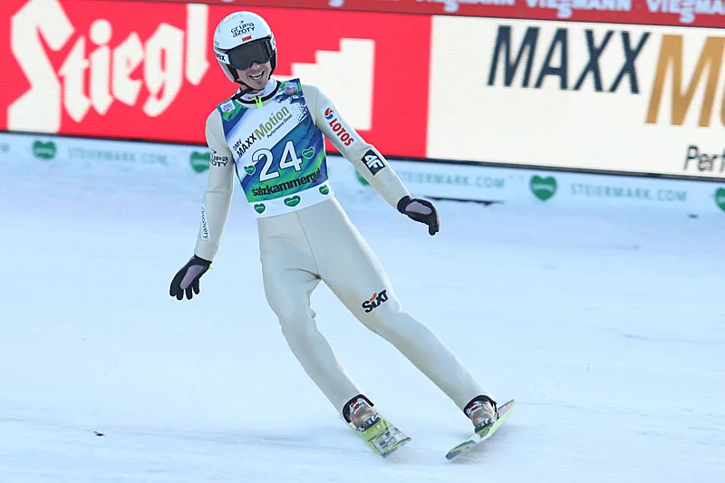Piotr Żyła zajął w pierwszym konkursie na skoczni w Bad Mitterndorf wysokie ósme miejsce. Jest to najlepsza lokata naszego zawodnika w tym sezonie.