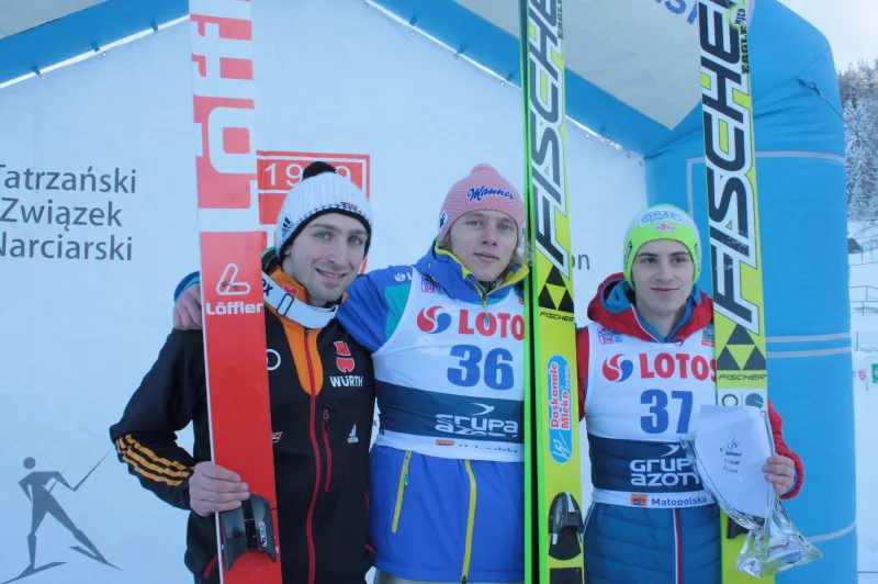 W dzisiejszym konkursie Pucharu Kontynentalnego w Zakopanem mogliśmy się cieszyć ze zwycięstwa reprezentanta Polski. Wygrał Dawid Kubacki, a za nim uplasowali się zawodnicy z Niemiec i Austrii - Daniel Wenig i Ulrich Wohlgenannt.