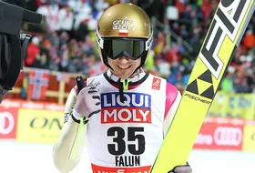 Historia pamięta tylko zwycięzców. Dziewiąte miejsce to sukces, którym może sie pochwalić tylko trener Kruczek i prezes Tajner (no i Żyła jeśli nie ma większych ambicji), no bo o czym innym mogą opowiadać w wywiadach? Czymś musza mydlić oczy. Ile mozna opowiadać o medalach Stocha z IO? Super, ze je zdobył ale to historia. Dzisiaj jest dzisiaj i na chwile obecna mozna powiedzieć, ze przygotowania do sezonu to porażka. Na początku sezonu trener kruczek opowiadał, ze celem sa mistrzostwa swiata dlatego OGLĄDAJĄC skoki w tv myślałem sobie ok słabsza forma ale celem jest Falun, zwyżka formy bedzie wiec na luty. No i co? No i nic! Ktoś zapieprzyl, ktoś kto brał za to pieniadze żeby było wspaniałe! Nie jest ale opinii publicznej sie wmawia, ze zawodnicy oddają dwa równe skoki. No i co z tego? Nic! W normalnej sytuacji ktoś kto ma honor juz dawno by sie przyznał, ze zawalił, ale nie w prywatnym folwarku Pana Tajnera, wiec beda pieprzyć w tv ze sukces! Jesli tl jest sukces to gratuluje! Niech "chłopaki" dalej zwiedzają sobie świat! Chłopaki no bo to nie sa zawodnicy! Nikt tak o nich nie mowi! Zawodnik pragnie rywalizować i zwyciężać a nie mowić, ze 9 miejsce to sukces. Widocznie dla nich oddać dwa mierne ale równe skoki to sukces. Gratuluje wiec!