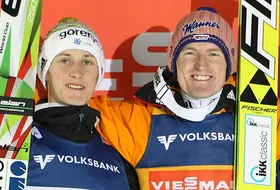 - Jak słusznie zauważyliście, obaj zawodnicy uzyskali taką samą liczbę punktów. Ostateczny sukces należał do Severina, choć obaj zajęli tę samą pozycję w klasyfikacji generalnej - wyjaśnia Hofer i dodaje: - Dwa pierwsze miejsca, niezależnie czy mają miejsce w trakcie czy na koniec sezonu, mają również znaczenie dla listy startowej. Tutaj również ten sam przepis (lepsze pozycje w konkursach) będzie uwzględniany. Oznacza to, iż na rozpoczęcie sezonu, Peter będzie startował jako przedostatni, zaś Severin jako ostatni zawodnik. To jest przepis, który zachowuje ich obu arytmetycznie na tym samym miejscu, ale jego skutkiem jest rozstrzyganie sporów właśnie poprzez najlepsze rezultaty. Przy układaniu listy startowej zawodów niezbędne jest nawet losowanie, jeżeli zawodnicy osiągnęli identyczne wyniki w indywidualnych zawodach (co kilka razy się już zdarzyło).