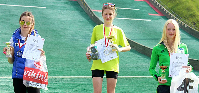 Najlepsza do niedawna polska skoczkini, Magdalena Pałasz, przegrała rywalizację wśród juniorek z nową kadrowiczką, o pięć lat młodszą Kingą Rajdą. Rajda (58,5 i 65,5 m.) pokonała Pałasz (57,5 i 63 m.) o 10,7 pkt. Trzecia była Czeszka Michaela Rajnachowa (57 i 57,5), a dopiero czwarta inna z kadrowiczek, Joanna Szwab. Kategorię młodziczek wygrała Paulina Cieślar, uzyskując 38 i 33,5 metra. Druga była Sabina Król, a trzecia Róża Pawlikowska (32,5 i 31,5 m).