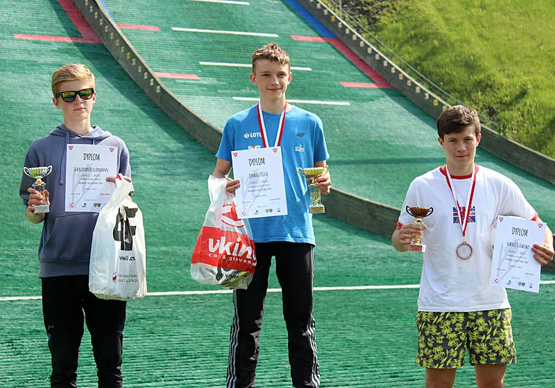 Kategorię Junior C wygrał Tomasz Pilch, skacząc na odległość 72 i 75 metrów. Drugie miejsce ze stratą 13,3 punktu zajął Czech Sebastian Kellermann (70,5 i 70 m), a trzecie Łukasz Stawowy (65 i 70 m). W kategorii junior D zwyciężył Mateusz Jarosz (61,5 i 65 m) przed Oskarem Rojkiem (60 i 60,5 m), a na najniższym stopniu podium stanął Wiktor Fickowski (57,5 i 59 m). W najmłodszej męskiej kategorii wiekowej Junior E triumfował zwycięzca LOTOS Cup 2015 - Jan Rzadkosz (39,5 i 38,5 m), pokonując drugiego Tymoteusza Amilkiewicza (32 i 33,5 m) oraz trzeciego Mateusza Chraścinę (34 i 31 m).