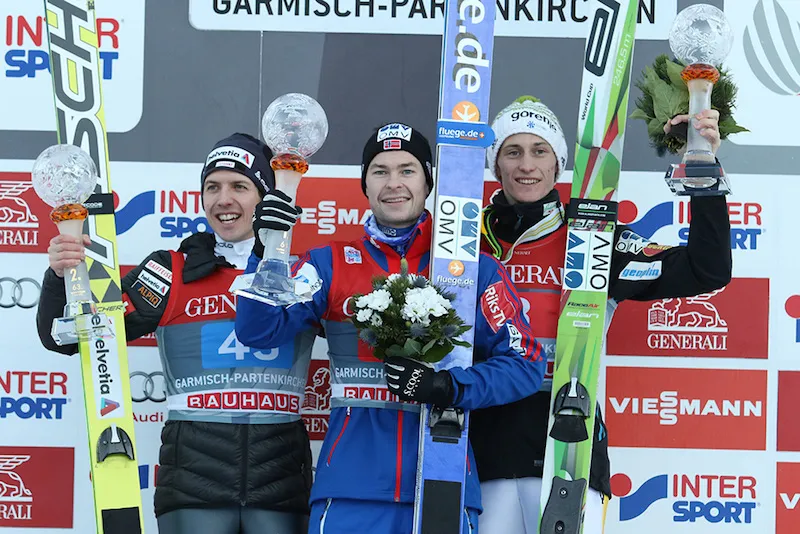 W historii Turnieju Czterech Skoczni najwięcej zwycięstw w Garmisch-Partenkirchen - 14 - odnosili reprezentanci Austrii. Dwanaście wygranych mają na swoim koncie Norwegowie, zaś dziewięć - Finowie. Turniejowe triumfy na Grosse Olympiaschanze odnosili również skoczkowie z NRD (7), Niemiec/RFN (6), Japonii (4), Czechosłowacji i Czech (4), ZSRR (2), Słowenii (2) i Kanady (1). Rok temu triumfował Anders Jacobsen przed Simonem Ammannem i Peterem Prevcem.