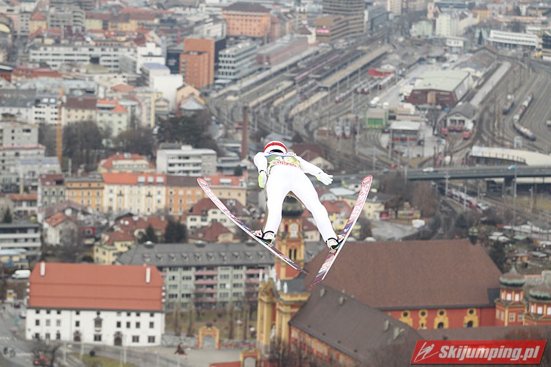 Reprezentant gospodarzy zapewnił sobie zwycięstwo lotem na 127. metr. Metr bliżej lądował drugi w dzisiejszych kwalifikacjach - Domen Prevc. Najmłodszy uczestnik rywalizacji stracił do Hayboecka zaledwie punkt. Niewiele brakowało, aby zmierzył się on jutro ze swoim bratem Peterem, który zrezygnował ze skoku. Ostatecznie lider Pucharu Świata i Turnieju Czterech Skoczni powalczy z Hayboeckiem. Trzecią notę konkursu kwalifikacyjnego wywalczył autor najdłuższego skoku - Anders Fannemel. Norweg o pół metra przekroczył rozmiar Bergisel, ale ruszał z dłuższego najazdu, a na dodatek skorzystał z wiatru pod narty.