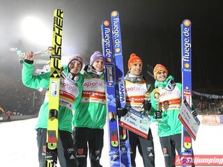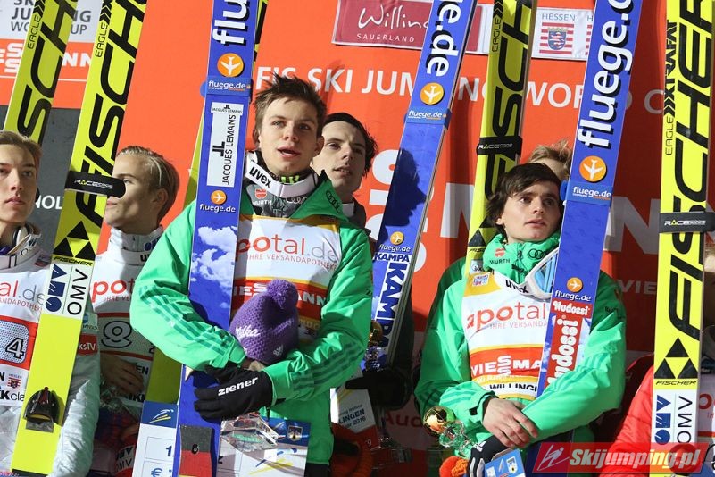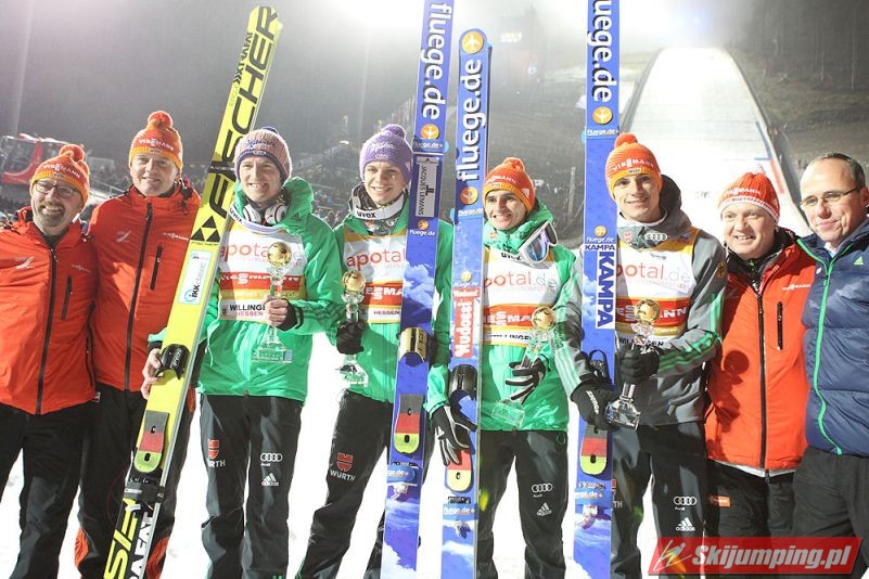 Reprezentacja Niemiec zwycięzcą loteryjnego, jednoseryjnego konkursu drużynowego Pucharu Świata w Willingen (HS145). Podopieczni Wernera Schustera pokonali o zaledwie 0,6 punktu ekipę Norwegii. Trzecie miejsce zajęli Austriacy. Polacy sklasyfikowani zostali na szóstej pozycji.