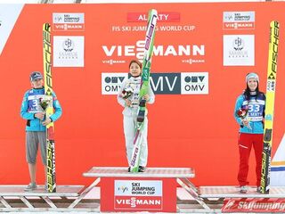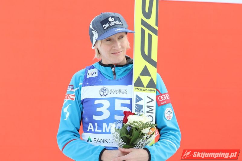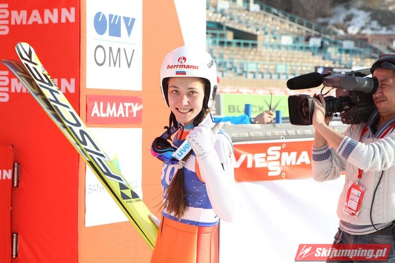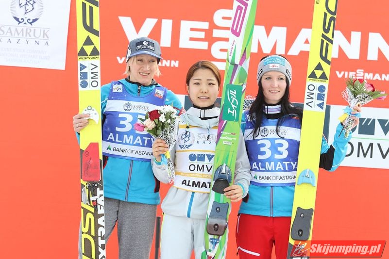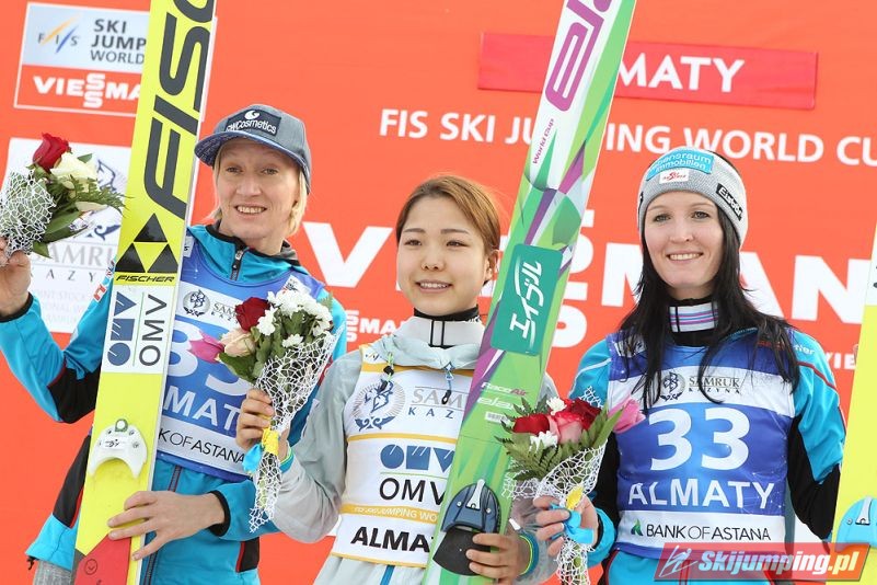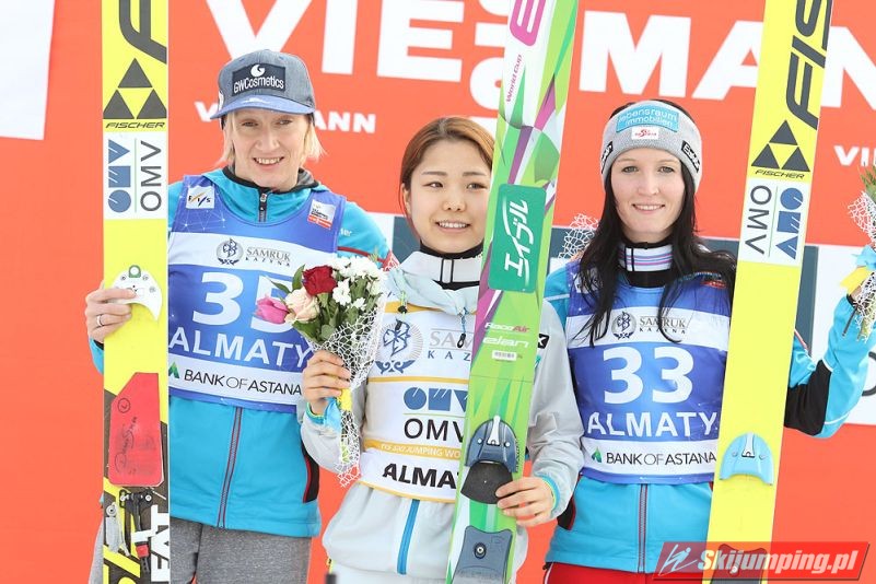 Sara Takanashi wygrała sobotni konkurs z cyklu Pucharu Świata Pań w kazachskich Ałmatach. Dla Azjatki jest to już 43. pucharowe zwycięstwo w karierze. Japonka lotem na 103. metr ustanowiła oficjalny rekord obiektu HS 106. Skład podium uzupełniły reprezentantki Austrii.