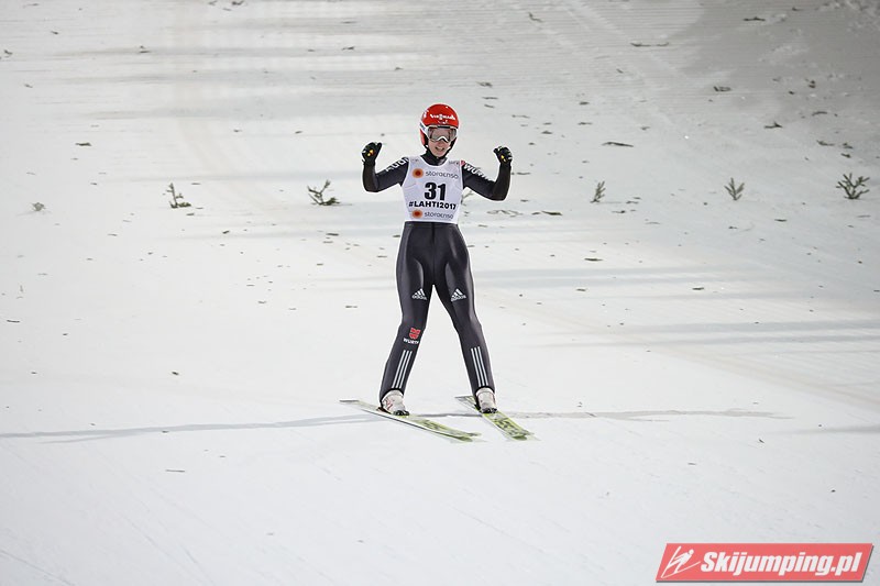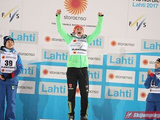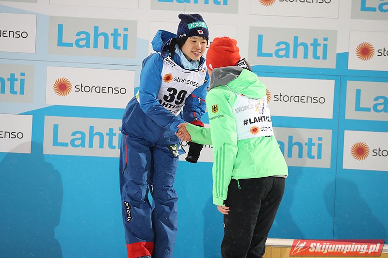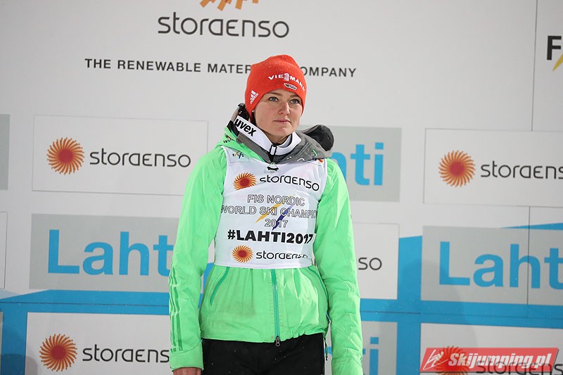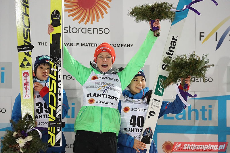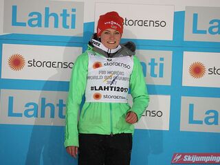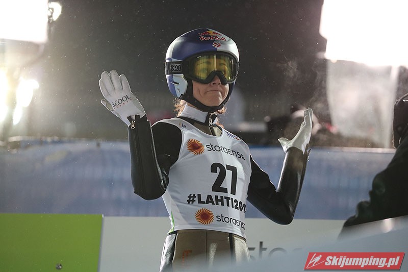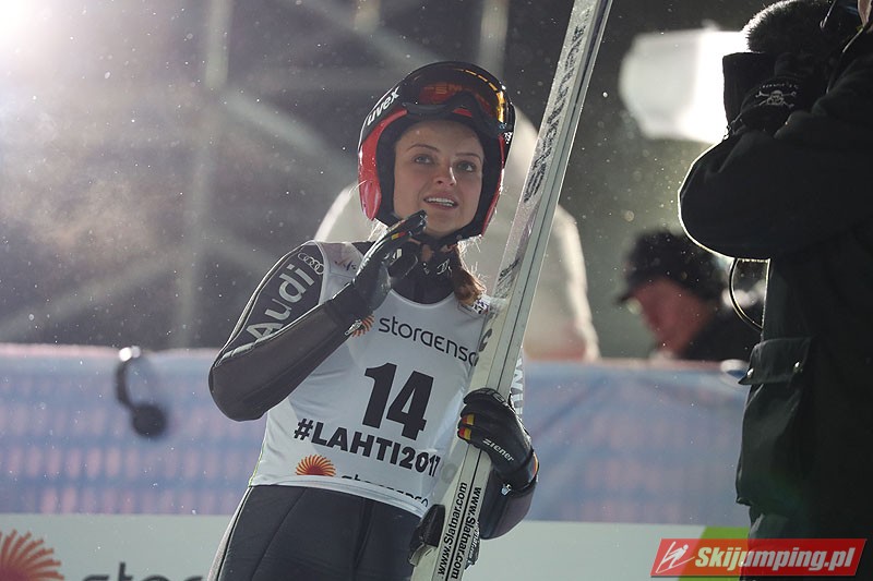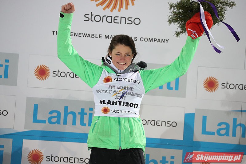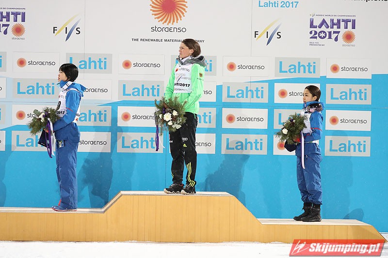 Carina Vogt mistrzynią świata! Reprezentantka Niemiec zwyciężyła w piątkowym konkursie w fińskim Lahti (HS100) i obroniła tytuł z Falun, tym samym zostając pierwszą w historii skoczkinią, która triumfowała na dwóch kolejnych czempionatach. Mistrzyni olimpijska sięgnęła po złoto dzięki skokom na odległość 98,5 m i 96,5 m. Srebro przypadło Yuki Ito, a brąz - Sarze Takanashi.