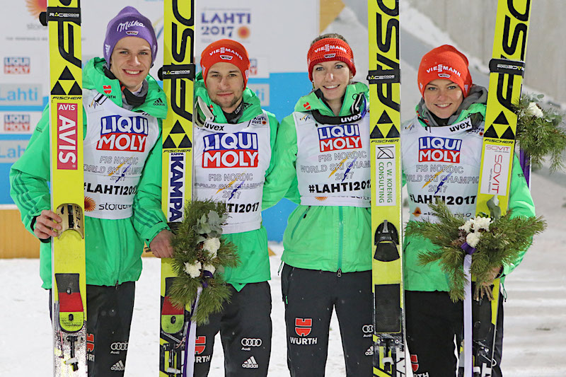 Reprezentacja Niemiec w składzie Carina Vogt, Markus Eisenbichler, Svenja Wuerth i Andreas Wellinger zwyciężyła w konkursie drużyn mieszanych na Mistrzostwach Świata w fińskim Lahti (HS100), czym powtórzyli swój wyczyn sprzed dwóch lat z Falun. Srebrny medal wywalczyli Austriacy, zaś brąz - Japończycy.