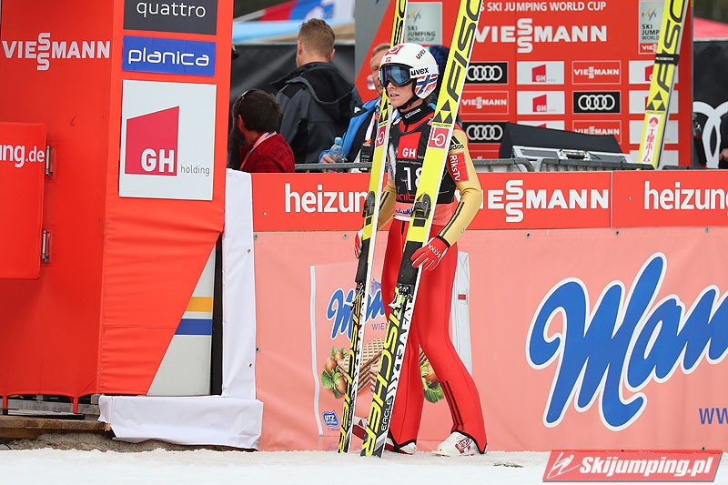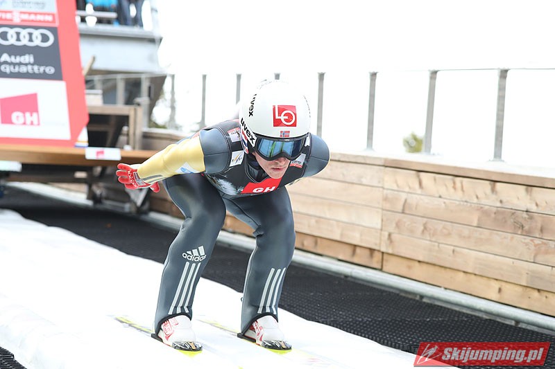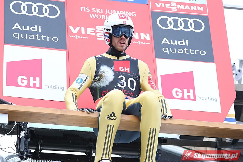 W pierwszej serii konkursowej najlepszy okazał się Stefan Kraft. Lider Pucharu Świata poszybował na odległość 243 metrów i wyprzedzał o 7,4 punktu Niemca Andreasa Wellingera (235 m) oraz o 16,2 pkt. jego rodaka - Markusa Eisenbichlera (243,5 m - nowy rekord życiowy). Czwarty jest Kamil Stoch. Wicelider cyklu wylądował na 229 metrze i traci 17,7 pkt. do lidera oraz 1,5 pkt. do podium. Na kolejnych pozycjach plasują się Anders Fannemel (243 m) i Robert Johansson (228 m).