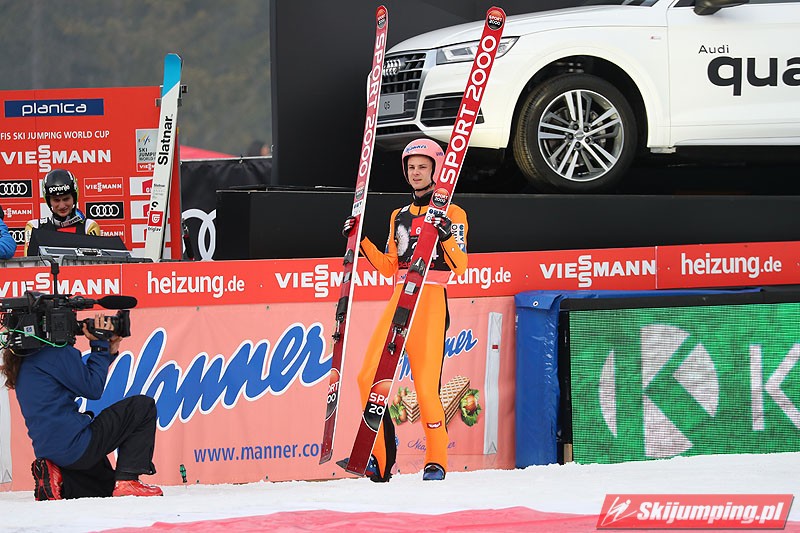 Stefan Kraft został zwycięzcą piątkowego konkursu indywidualnego Pucharu Świata w słoweńskiej Planicy (HS225). Reprezentant Austrii triumfował po skokach na odległość 243 m i 240,5 m i jest już o krok od triumfu w klasyfikacji generalnej cyklu. Drugie miejsce zajął Niemiec Andreas Wellinger, a trzecie - jego rodak, Markus Eisenbichler. W finałowej serii wystąpił komplet czterech Polaków. Najlepszy z Biało-Czerwonych, Kamil Stoch zajął piątą pozycję.