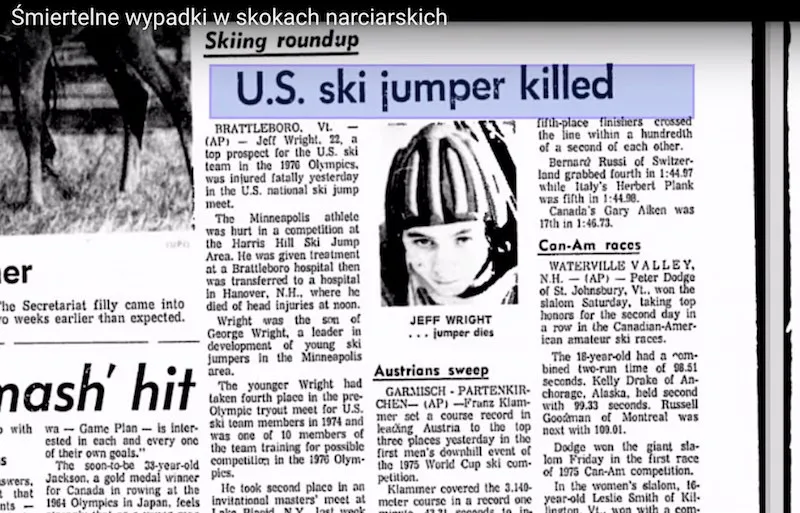 Swoją drogą na Youtube jest filmik "wypadki śmiertelne na skoczni" którym chyba się redakcja inspirowała ale tam jest podane że ofiar śmiertelnych było 38... -