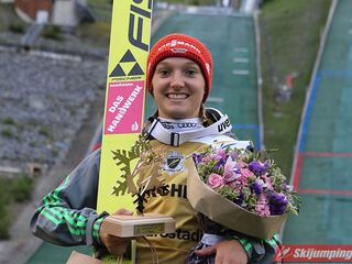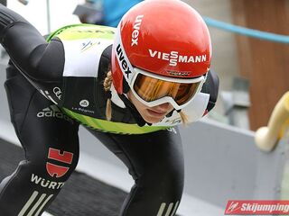 21-letnia Niemka przodownictwo w stawce uzyskała już na półmetku zmagań, kiedy to z 9. belki startowej zdecydowanie odskoczyła oponentkom, lądując na 95. metrze. W tym momencie miała 5,4 pkt przewagi nad Yuki Ito (91 metrów; 8. belka) i 10,2 pkt zapasu nad Iriną Awwakumową (90 metrów; 9. belka). Czwarte miejsce zajmowała Maren Lundby (89 metrów; 8. belka), a dopiero piąta była Sara Takanashi (89 metrów; 8. belka), która do liderki traciła aż 12,7 pkt.