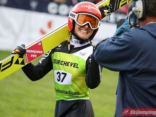 W finale walcząca o piętnaste z rzędu zwycięstwo w cyklu LGP Takanashi wyprowadziła cios w postaci lotu na 90. metr. Miejsce na szczycie tabeli utrzymywała do skoku Althaus. Przedstawicielka klubu SC 1906 Oberstdorf nie osiągnęła punktu konstrukcyjnego francuskiej skoczni, ale 88,5 metra w zupełności wystarczyło do odniesienia pierwszego w karierze zwycięstwa na igelicie w zmaganiach najwyższej rangi. Największym dotychczasowym sukcesem Althaus jest wygrana w konkursie Pucharu Świata Pań, który 12 lutego tego roku odbył się w Ljubnie w Słowenii. Ostateczna różnica między nią a Japonką wyniosła 10,7 pkt. Na najniższym stopniu podium stanęła najlepsza skoczkini przedpołudniowego treningu i kwalifikacji - Yuki Ito. Sportsmenka z Kraju Kwitnącej Wiśni w decydującej serii doleciała do 85. metra.