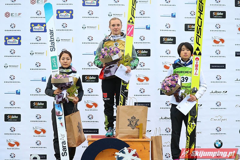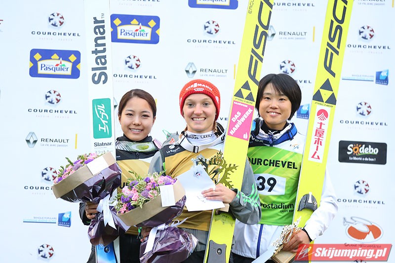 Nie żadna ze świetnie spisujących się od początku dnia Japonek, lecz Katharina Althaus wygrała konkurs inaugurujący Letnie Grand Prix Pań 2017. Niemka nie tylko odniosła pierwsze zwycięstwo w zawodach tej rangi w karierze, ale i przerwała trwającą od 13 września 2013 roku serię Sary Takanashi. Japonka do dziś była niepokonana przez czternaście kolejnych konkursów LGP Pań, jednak w Courchevel na obiekcie HS 96 przegrała z przedstawicielką naszych zachodnich sąsiadów. Skład podium uzupełniła Yuki Ito.