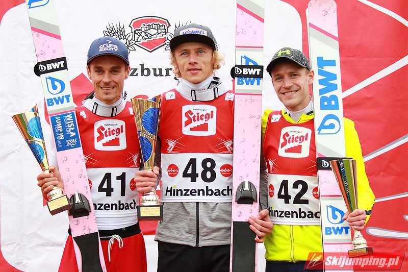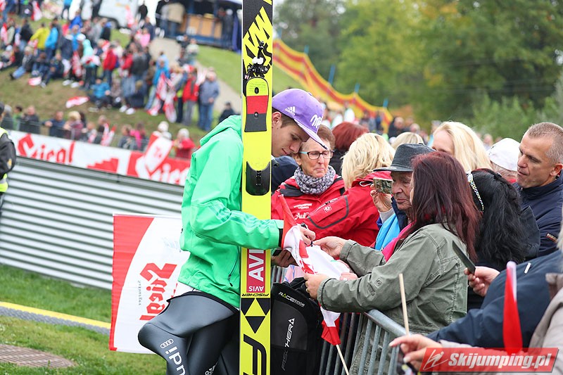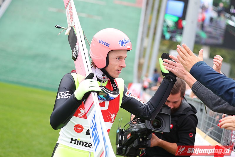Tego lata nie ma mocnych na Dawida Kubackiego! Reprezentant Polski ponownie triumfował, tym razem w niedzielnych zawodach Letniego Grand Prix w austriackim Hinzenbach (HS94). Reprezentant Polski dzięki skokom na odległość 88,5 m i 94,5 m powrócił na pozycję lidera klasyfikacji generalnej. Drugie miejsce zajął Piotr Żyła (87 m i 92,5 m), a trzecie - Czech Roman Koudelka (88,5 m i 90,5 m). W finałowej serii wystąpiło sześciu Polaków, z czego czterech uplasowało się w pierwszej siódemce.