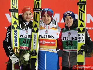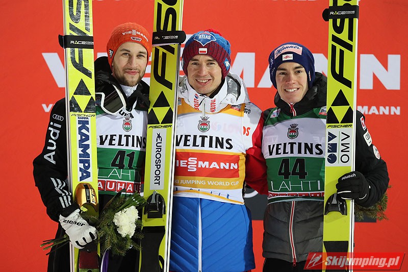 Niewiele zabrakło, a na podium niedzielnego konkursu w Lahti stanęłoby dwóch Polaków. Dawid Kubacki po finałowej próbie na odległość 127,5 m awansował na czwartą lokatę, o 1,1 pkt. za czołową trójką. Miejsc na podium nie obronili ostatecznie piąty Andreas Stjernen (125,5 m) i szósty Ryoyu Kobayashi (125 m).