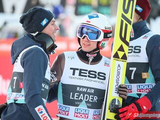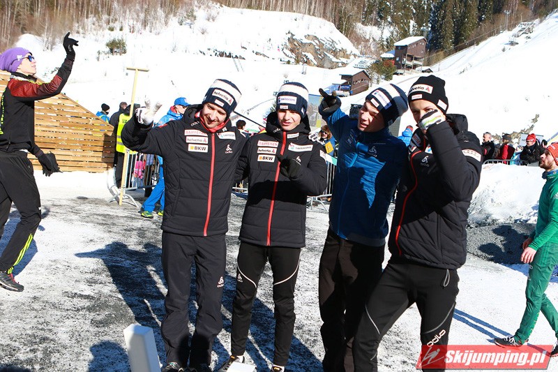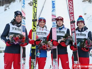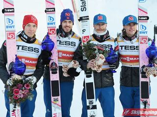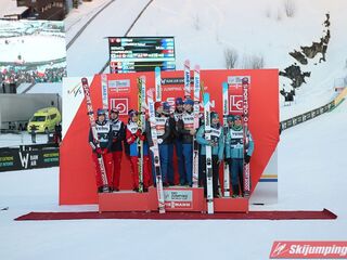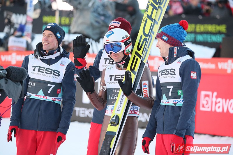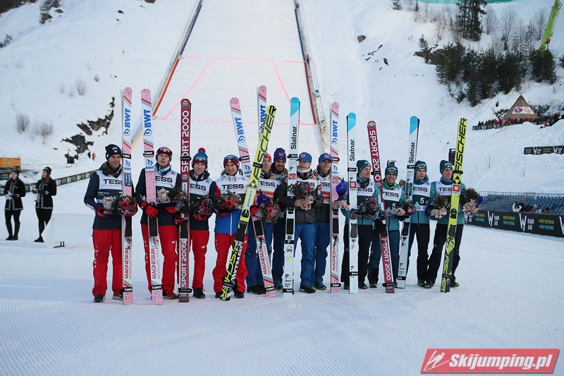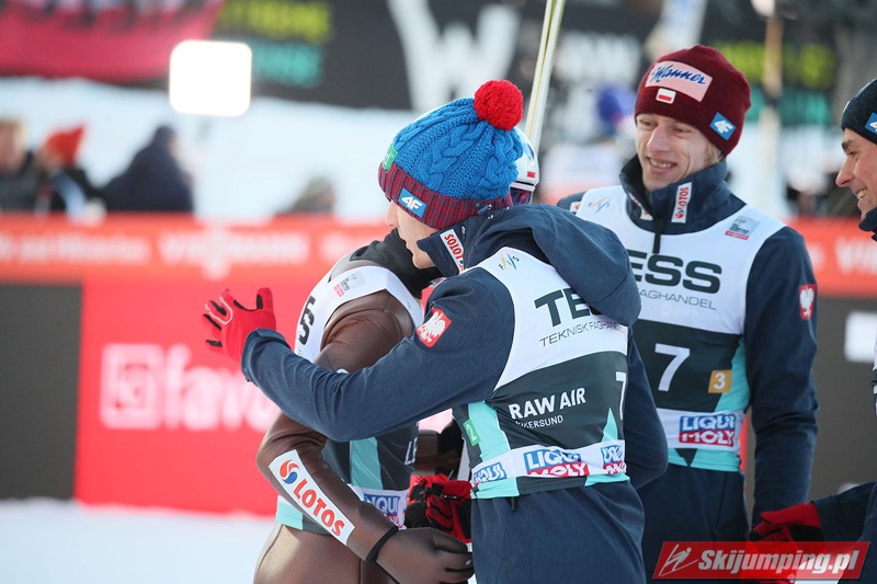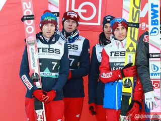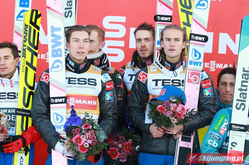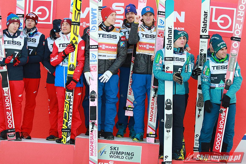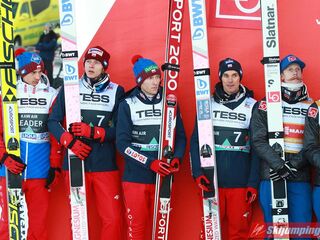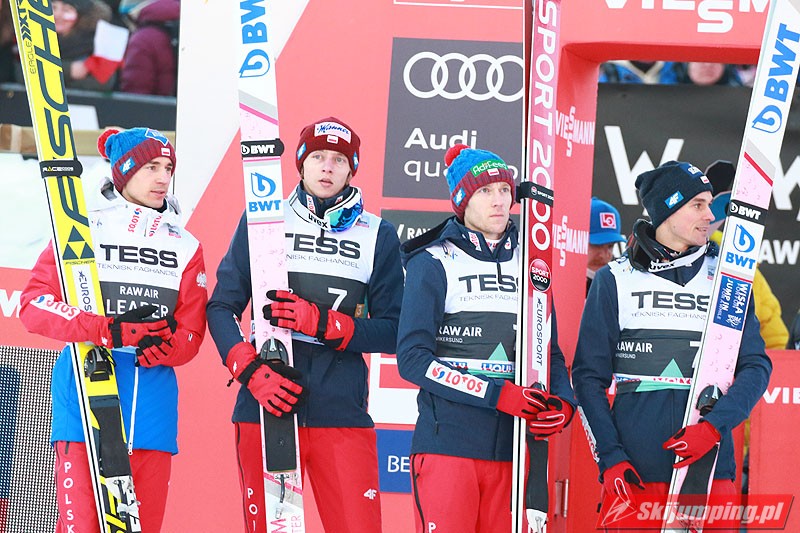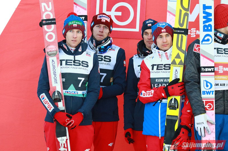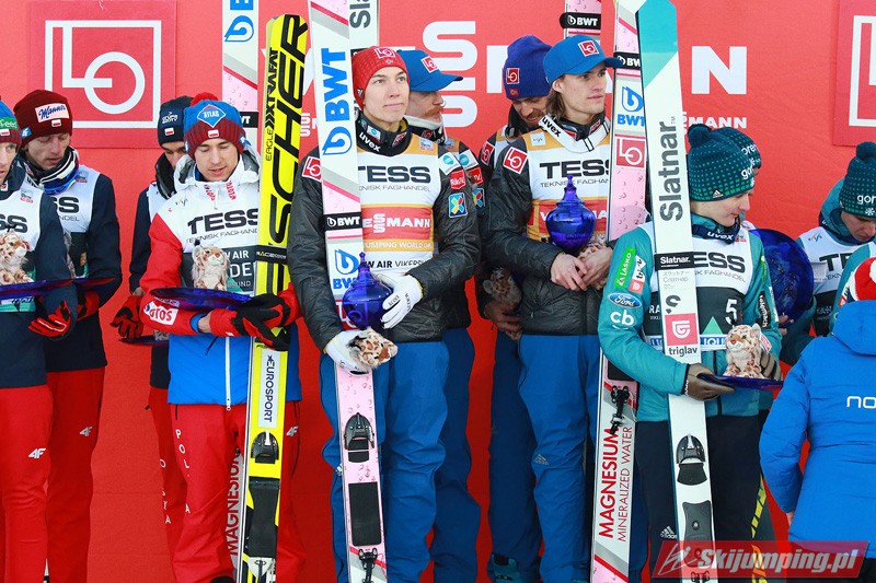 Trzecią lokatę zajmowali Polacy. Biało-Czerwoni w składzie Piotr Żyła (225 m), Stefan Hula (189,5 m), Dawid Kubacki (200 m) i Kamil Stoch (206 m w najgorszych warunkach wietrznych serii) tracili do drugiego miejsca 21,1 punktu.