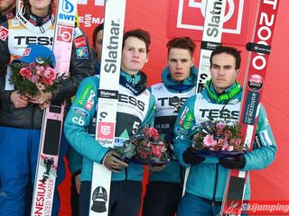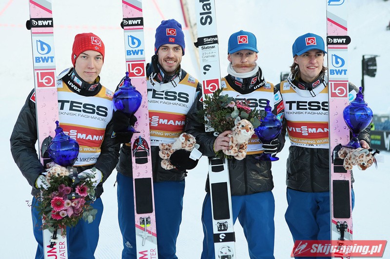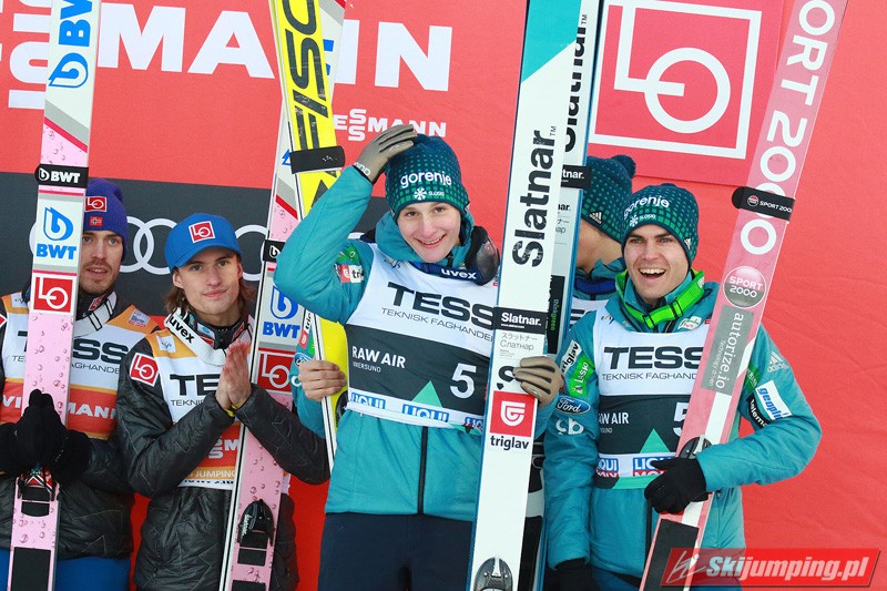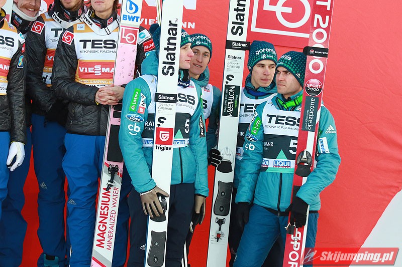 Na najniższym stopniu podium ostatecznie stanęli Słoweńcy. Domen Prevc (237,5 m i 132 m), Jernej Damjan (207 m i 218 m), Tilen Bartol (203 m i 226 m) oraz Peter Prevc (210,5 m i 215 m) stracili 17,7 pkt. do Polaków.