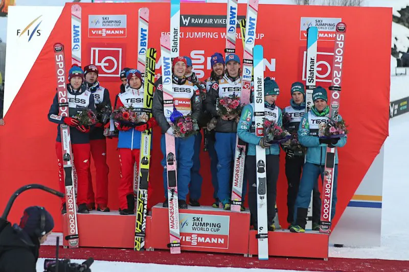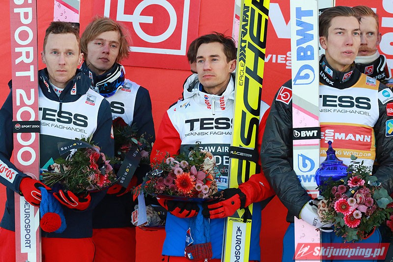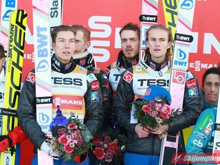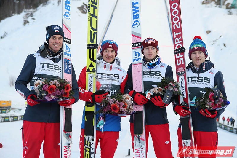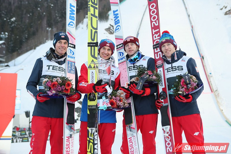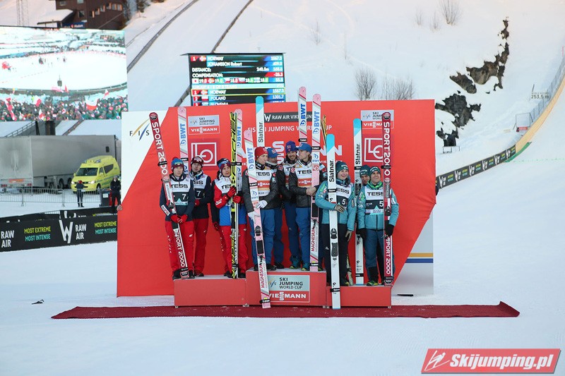 Reprezentacja Polski po raz dwudziesty pierwszy stanęła na podium drużynowego konkursu Pucharu Świata. Biało-Czerwoni mają na swoim koncie 3 zwycięstwa, 10 drugich miejsc oraz 8 trzecich pozycji. To również czwarte podium naszej drużyny na obiekcie mamucim (trzykrotnie drugie i raz trzecie miejsce).