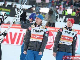 Biało-Czerwoni podobnie jak przed rokiem, również i dziś w Vikersund zakończyli konkurs drużynowy na drugim miejscu. Po próbach Piotra Żyły (166,5 m), Stefana Huli (208 m) i Dawida Kubackiego (202,5 m) nasz zespół plasował się na trzeciej pozycji. Awans na wyższy stopień podium zapewnił na Kamil Stoch, który w finale wylądował na 234 metrze.