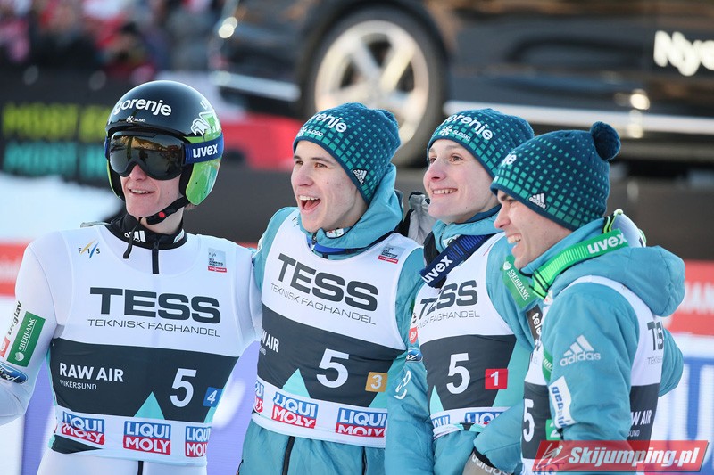 Reprezentacja Norwegii pewnie triumfowała w sobotnim konkursie drużynowym Raw Air na mamuciej skoczni w Vikersund (HS240). Drużyna Alexandra Stoeckla była pewna triumfu jeszcze przed finałowym lotem Roberta Johanssona. Drugie miejsce zajęli Polacy, a trzecie - Słoweńcy.