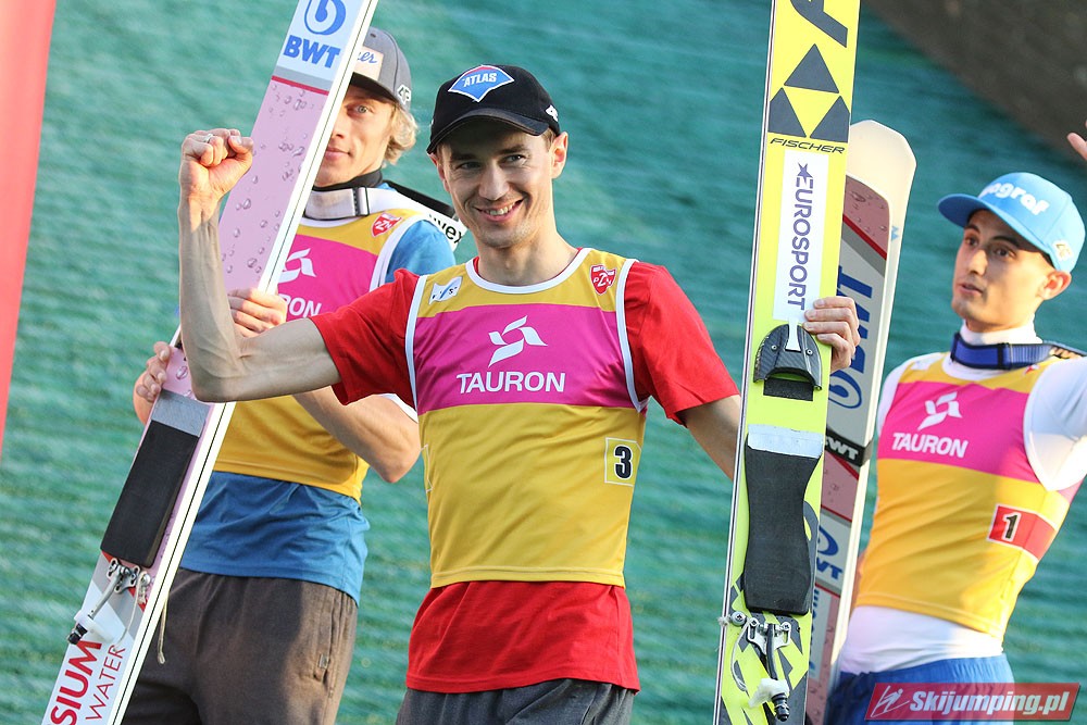 Nie ważne czy lato czy zima zwycięstwa czy podia zawsze będą cieszyć. A co do formy to po prostu jest tak, że naszym (jak ostatnio co roku zresztą) ta forma nie ulatuje w takim stopniu jak rywalom. Dlatego taka przewaga. Widać choćby to, że Kamil jest jeszcze niestabilny jednak jak sam zauważył nigdy nie zaczynał lata w taki sposób i tu się zgadzam. Maciej Kot i Dawid Kubacki również nie stracili wiele z tej swojej formy. A co do Piotrka Żyły to bez wątpienia obecnie skacze lepiej niż zimą i oby tak dalej.
