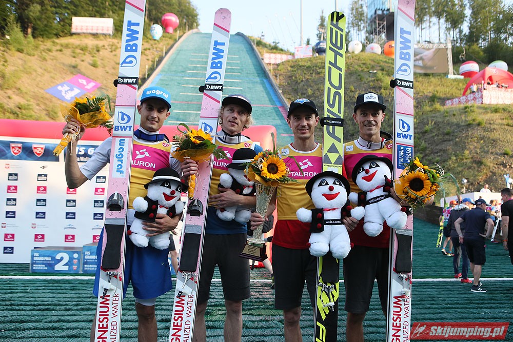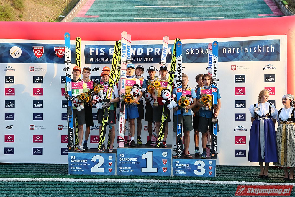 Wielki popis Biało-Czerwonych na inaugurację Letniego Grand Prix 2018! Polacy triumfowali w inauguracyjnym konkursie drużynowym w Wiśle z rekordową przewagą 71,3 pkt. nad drugimi Niemcami. Trzecie miejsce zajęli Norwegowie.