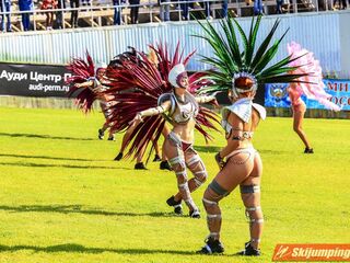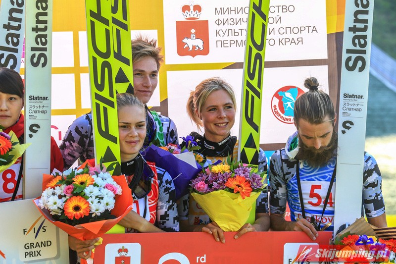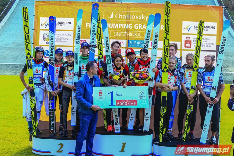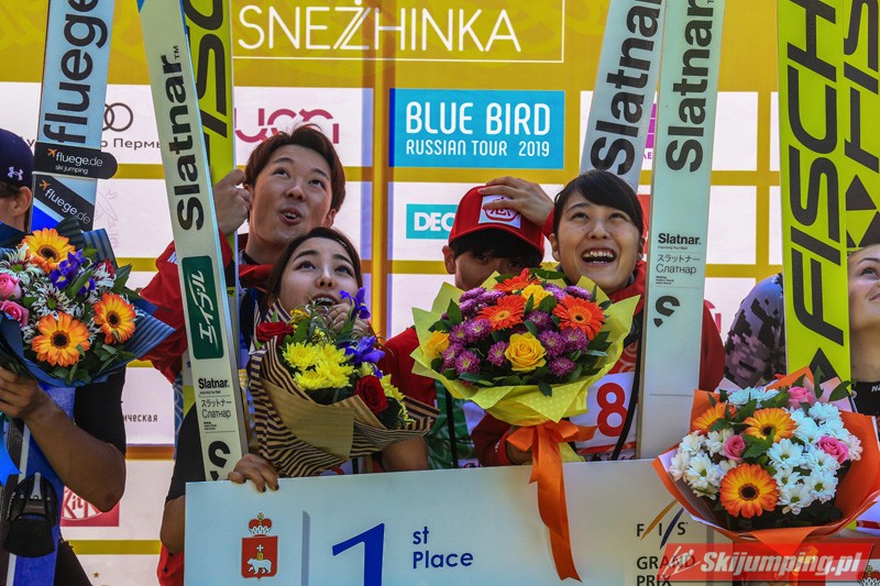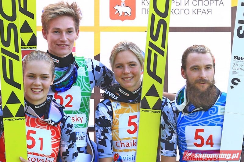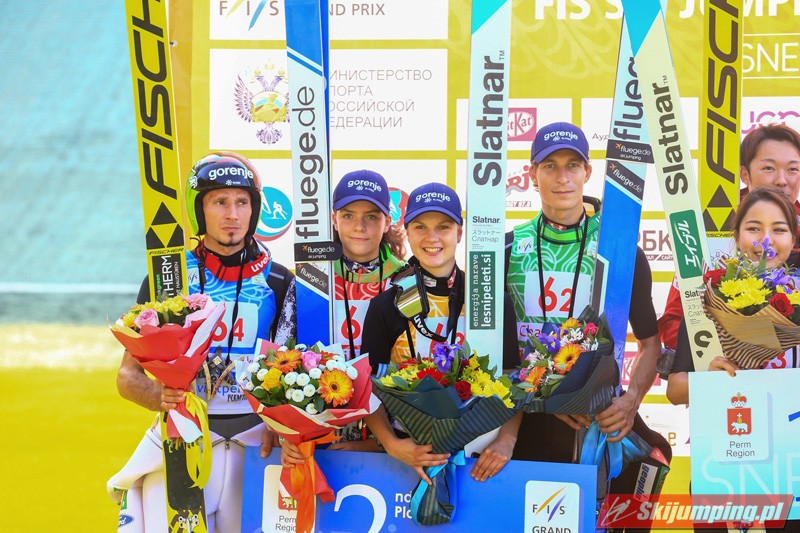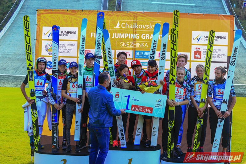 W mieszanych nastrojach trybuny kompleksu skoczni w Kraju Permskim opuszczali rosyjscy sympatycy skoków narciarskich. Choć w ostatniej grupie dnia oficjalny rekord skoczni ustanowił Jewgienij Klimow (146 metrów), gospodarze finiszowali na czwartej pozycji. Krótkie skoki żeńskiej części reprezentacji wykluczyły Rosjan ze skutecznej walki o podium. Aleksandra Barancewa skoczyła 125 oraz 123,5 metra, a Sofja Tichonowa tylko 105 i 118 metrów. Dmitrij Wasiljew dwukrotnie przekraczał granicę 130. metra (135 oraz 132,5 metra), a Klimow w pierwszej próbie doleciał do 132. metra.