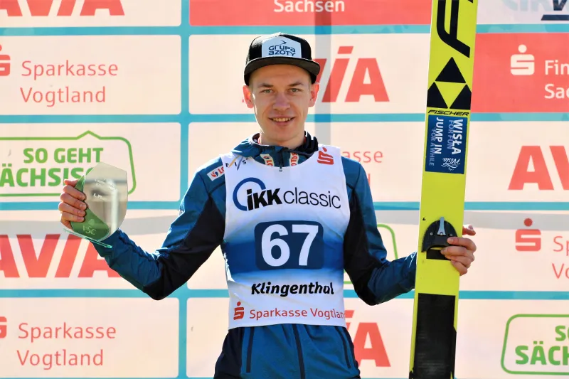 Podium wywalczone w niedzielę przez Zniszczoła jest drugim tego zawodnika w zakończonej edycji LPK. Podopieczny trenera Macieja Maciusiaka w czołowej trójce uplasował się też w Wiśle, gdzie uległ tylko Philippowi Aschenwaldowi z Austrii. Dziś, na Sparkasse Vogtland Arenie w Klingenthal, drugą pozycję zajmował po pierwszej serii, w której z 21. belki doleciał do 134. metra. O półtora punktu wyprzedzał go wówczas Ulrich Wohlgenannt. Rezultat Austriaka, ruszającego z platformy startowej nr 22, to 135 metrów. W finale panowie stoczyli zacięty bój, z którego górą wyszedł nasz rodak. Zniszczoł i Wohlgenannt kończyli swoje próby na 136. metrze, ale w ostatecznym rozrachunku Austriak stracił do Polaka 1,9 pkt. Skład podium uzupełnił najlepszy z przedstawicieli gospodarzy - Andreas Wank. Drużynowy mistrz olimpijski z 2014 roku uzyskał dziś 132,5 oraz 131,5 metra. Niemiec przegrał ze Zniszczołem różnicą 5,9 pkt.