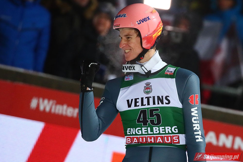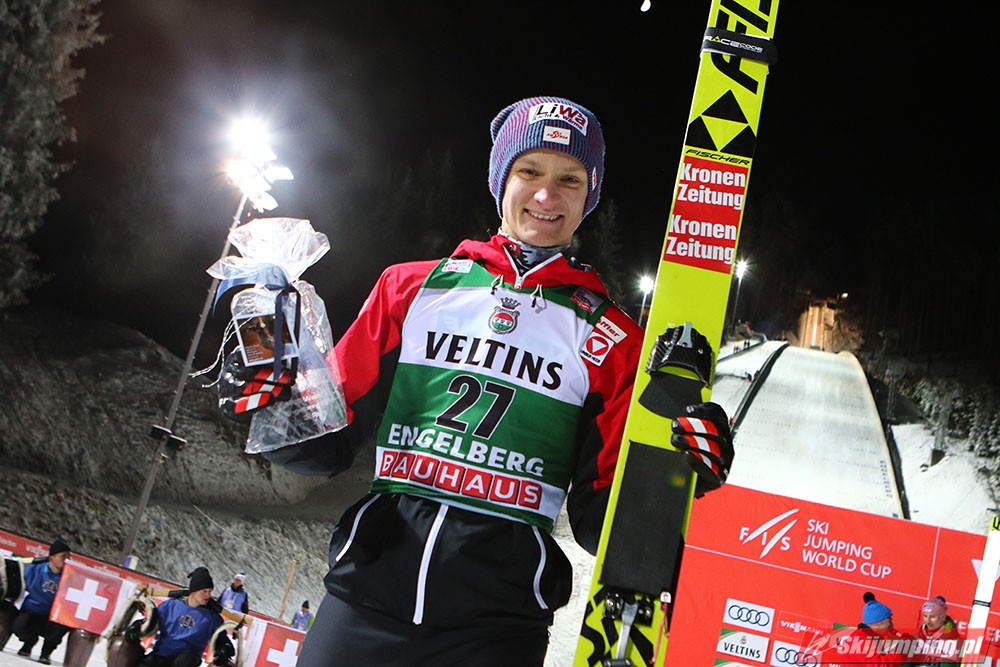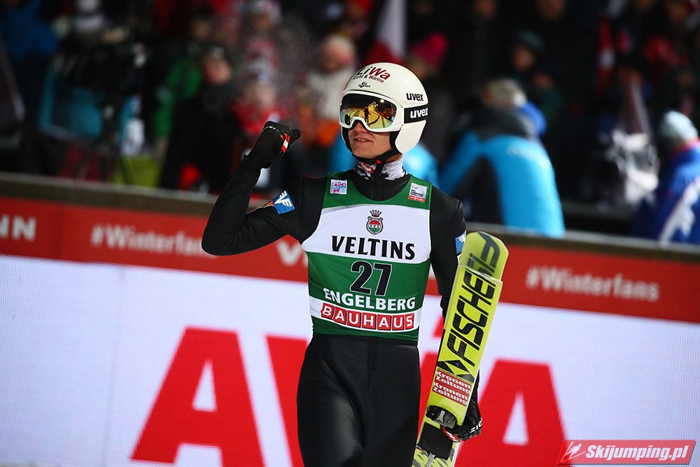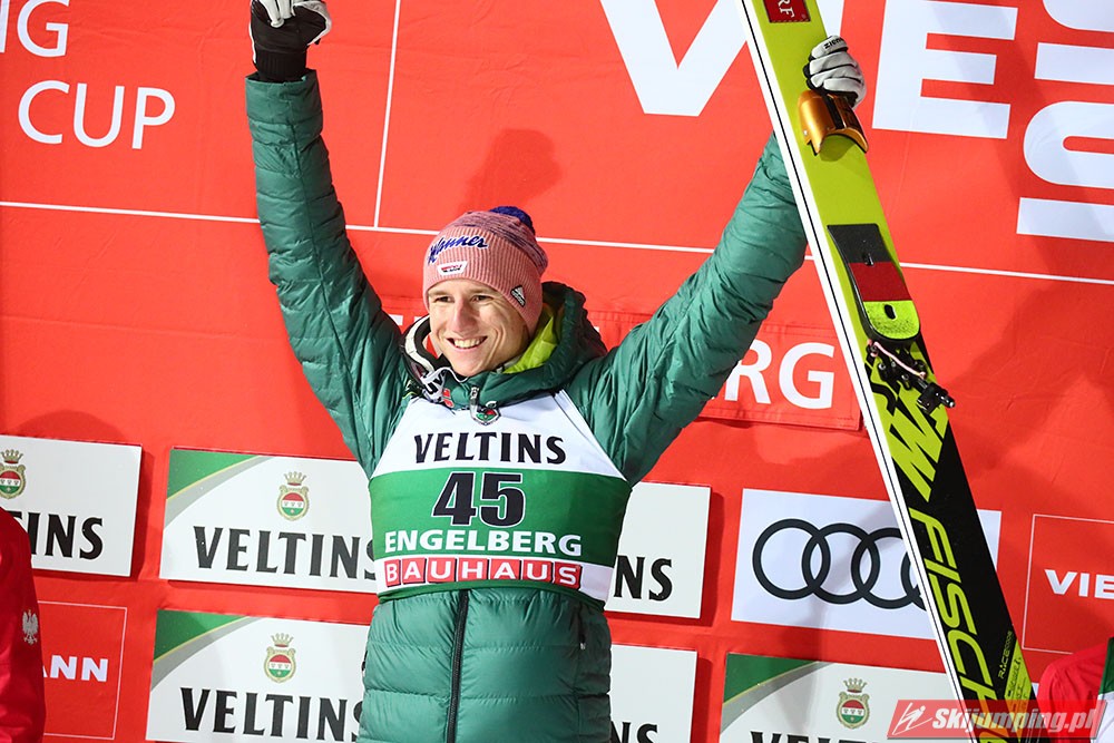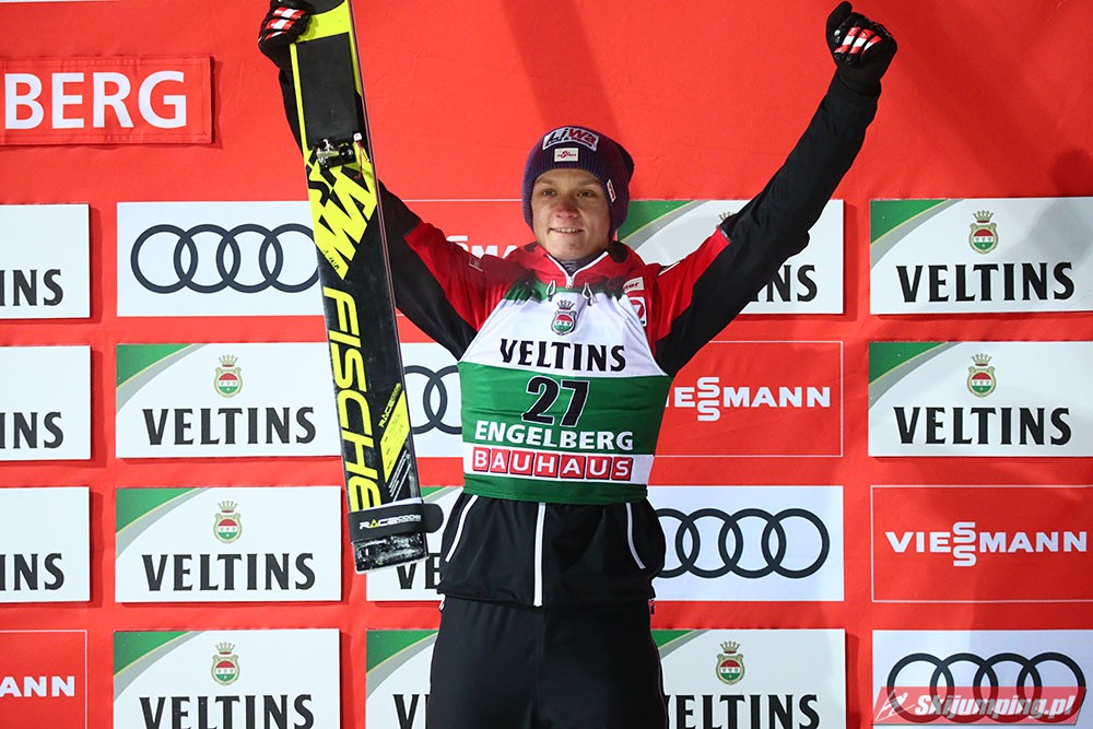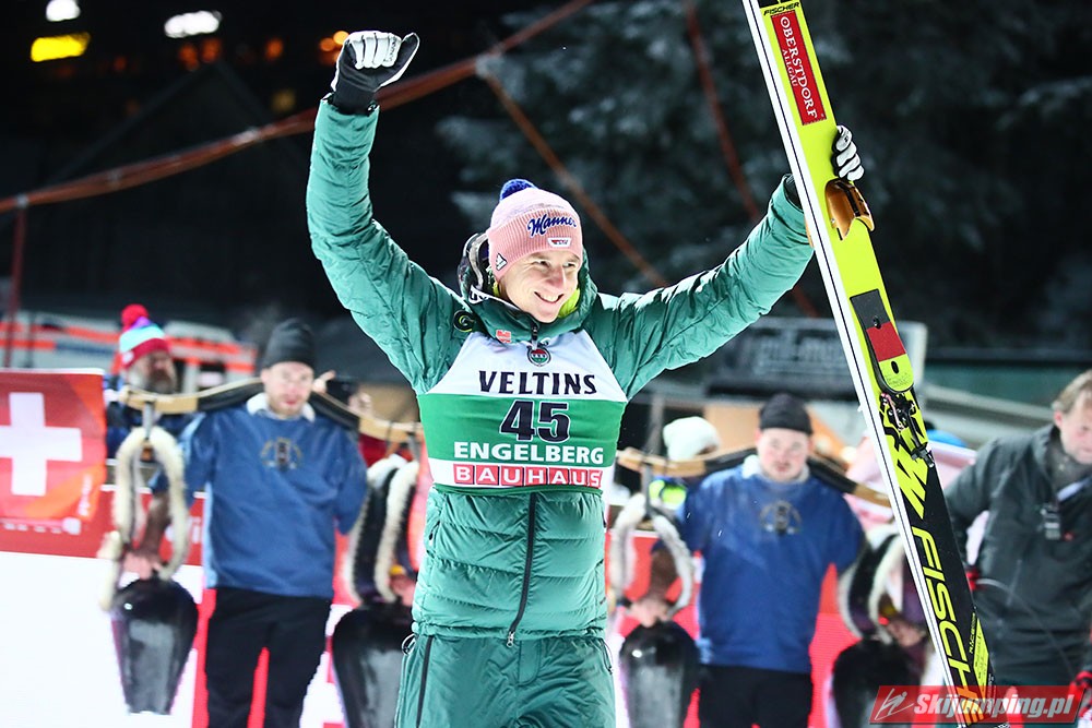 Karl Geiger odniósł pierwszą w karierze wygraną w Pucharze Świata. Reprezentant Niemiec został zwycięzcą sobotniego konkursu w Engelbergu (HS140), dzięki skokom na odległość 135 m i 141 m. Drugie miejsce zajął Piotr Żyła (134 m i 136 m), a trzecie Austriak Daniel Huber (135 m i 138,5 m). Pucharowe punkty zdobyło czterech Polaków.