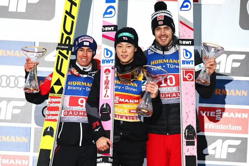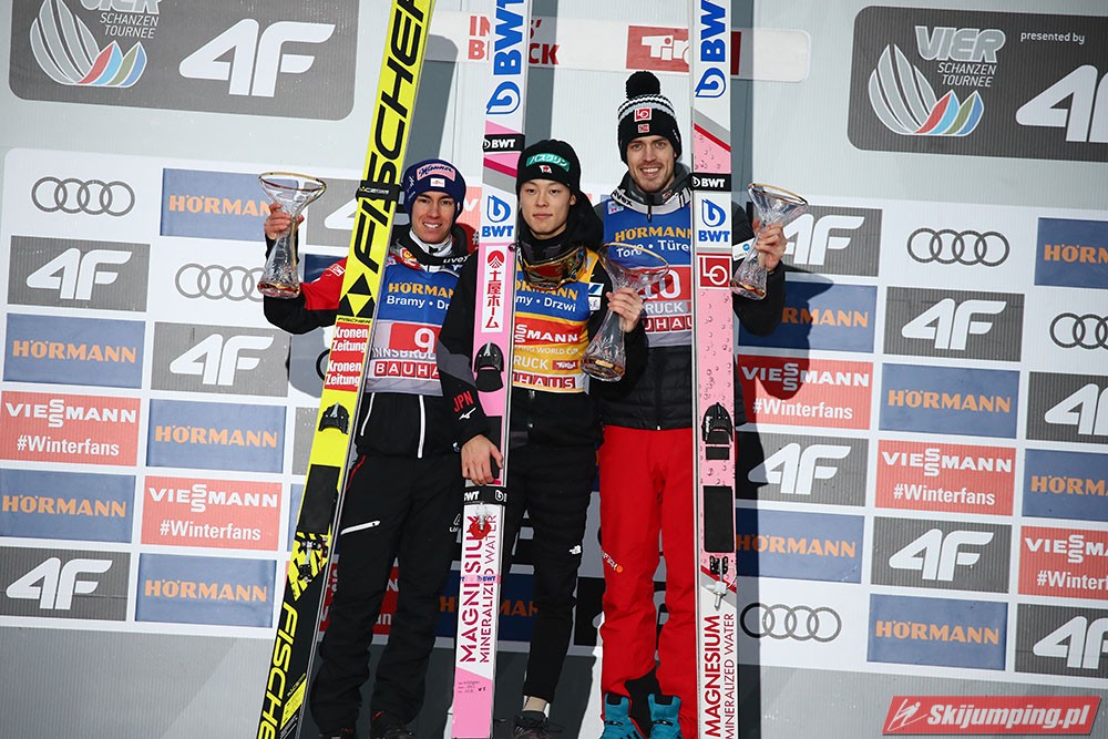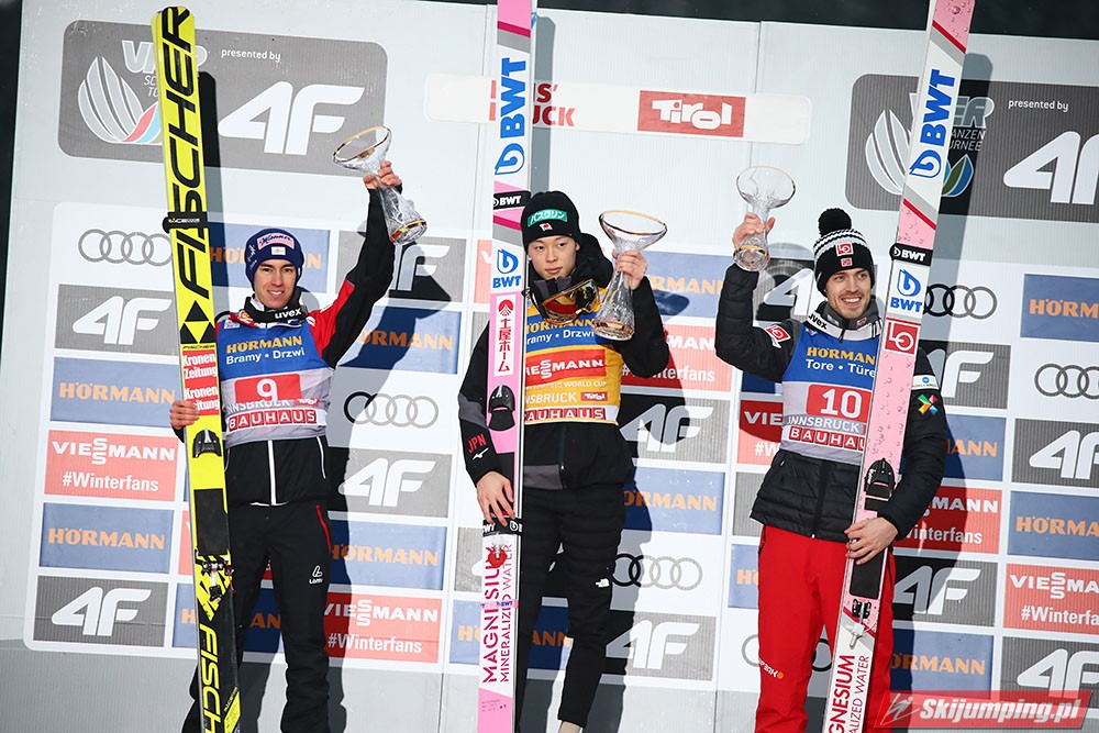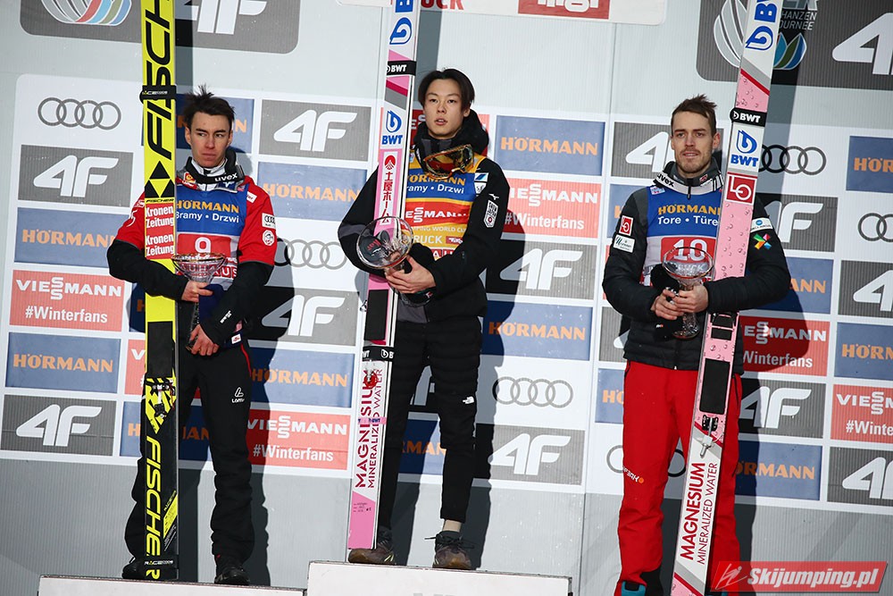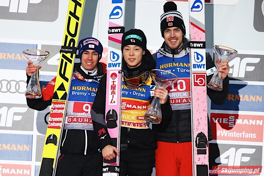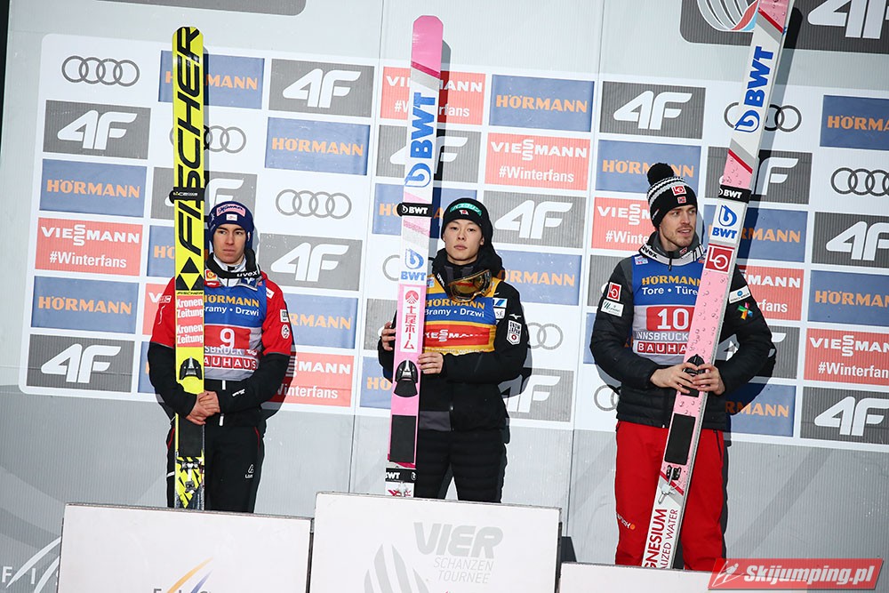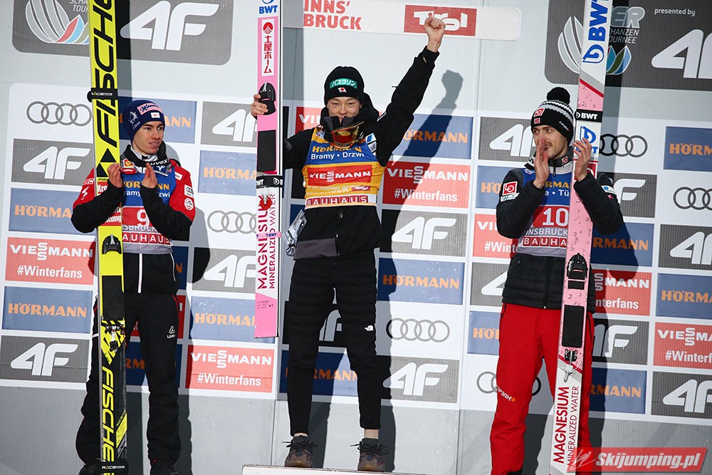 R. Kobayashi pewnie zmierza po Złotego Orła za triumf w 67. Turnieju Czterech Skoczni. Reprezentant Japonii podobnie jak to miało miejsce w Niemczech, sięgnął po zwycięstwo również w trzecich zawodach w Innsbrucku (HS130) po skokach na odległość 136,5 m i 131 m. Drugi był Austriak Stefan Kraft, a trzeci Norweg Andreas Stjernen. Piąte miejsce zajął Kamil Stoch. W finałowej rundzie wystąpiło trzech Polaków.