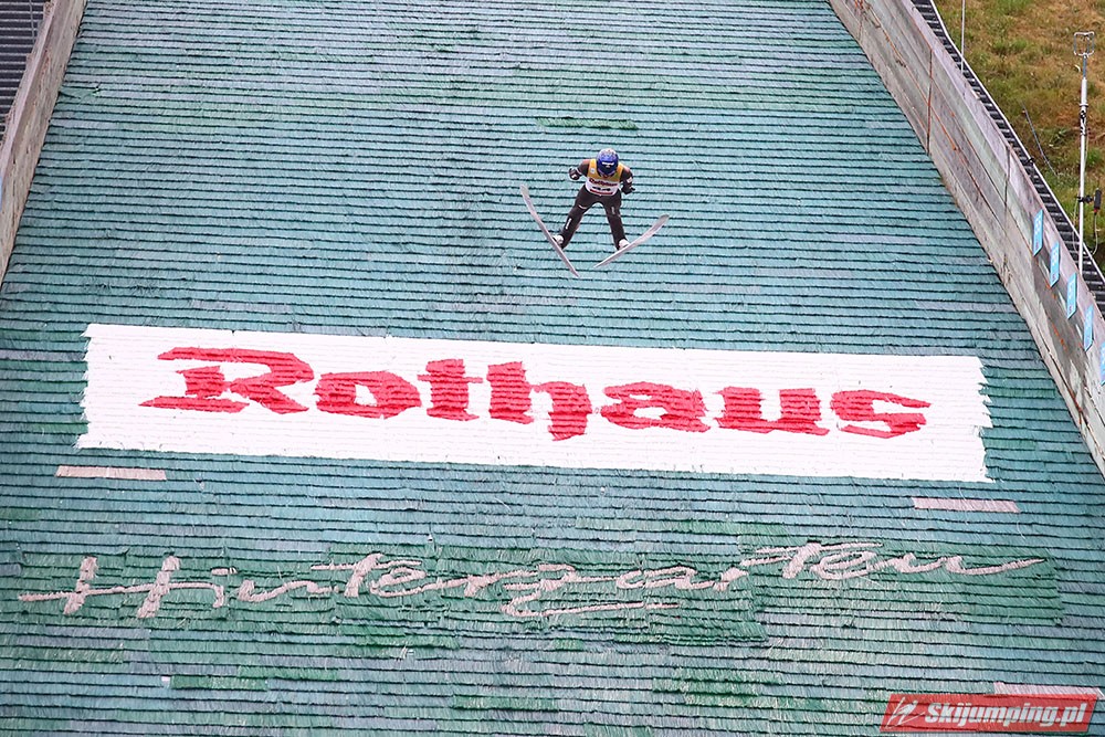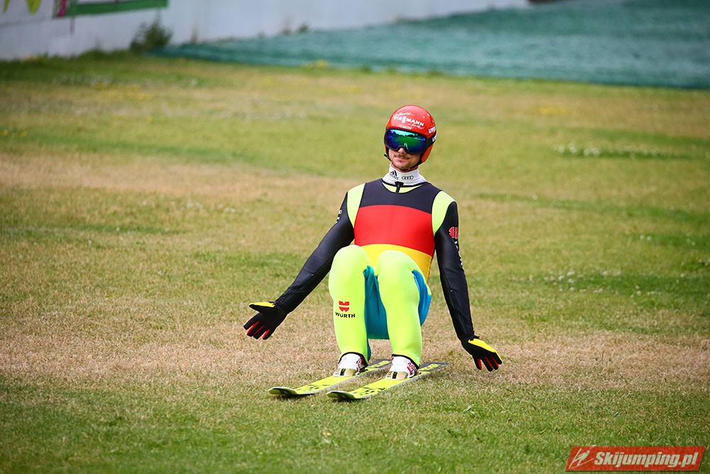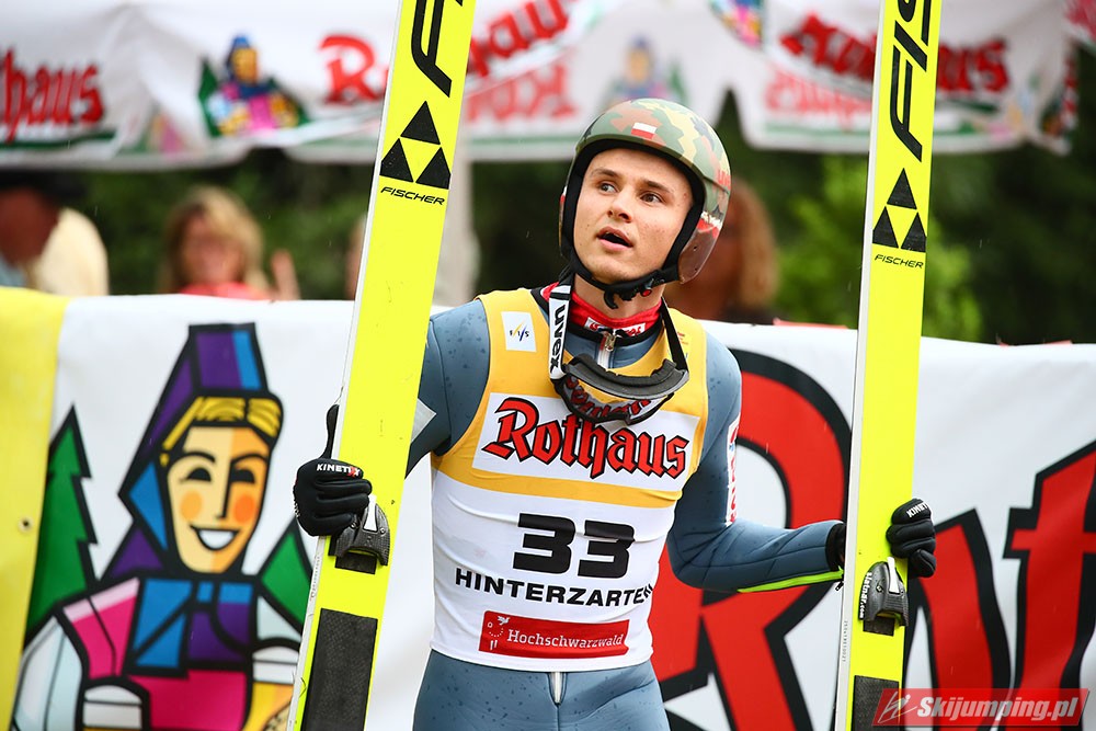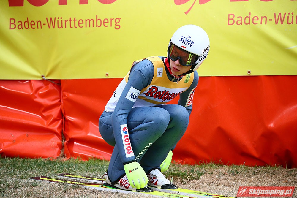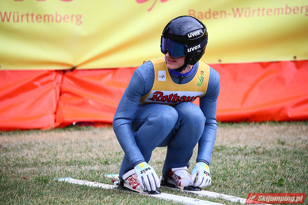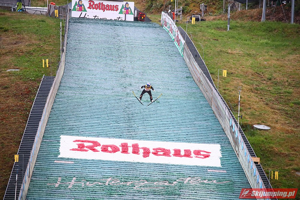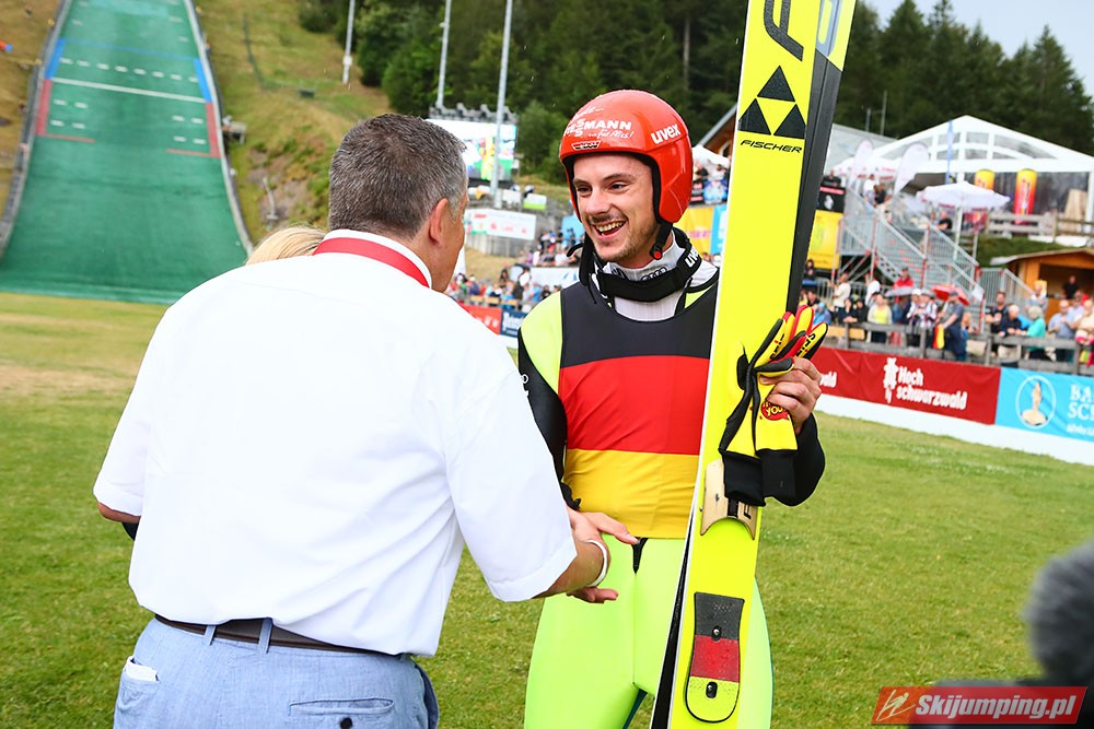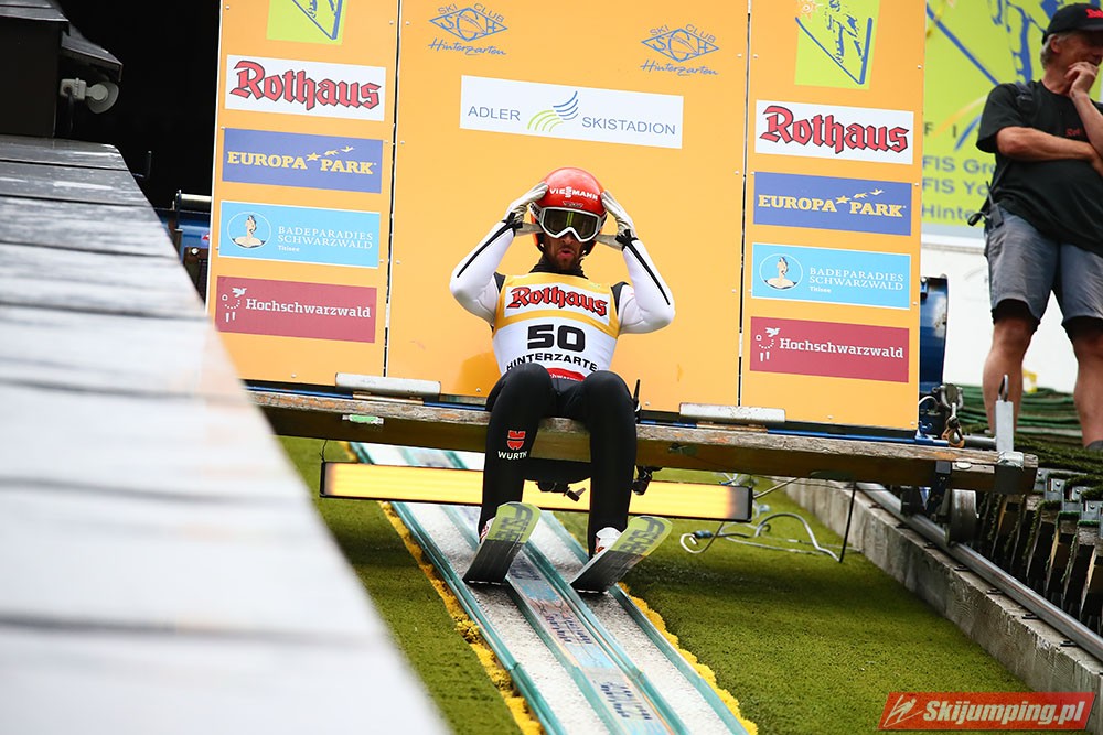 Karl Geiger został zwycięzcą konkursu indywidualnego Letniego Grand Prix na Rothaus-Schanze (HS108) w Hinterzarten. Reprezentant Niemiec oddał skoki na odległość 106 m oraz 99 m i wyprzedził o 0,4 punktu, prowadzącego na półmetku, Gregora Schlierenzauera. Na najniższym stopniu podium stanął kolejny zawodnik gospodarzy, Richard Freitag. W finale wystąpiło pięciu Polaków. Najwyższe miejsce zajął trzynasty Andrzej Stękała.
