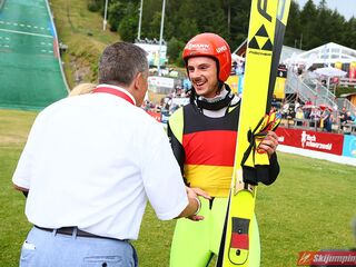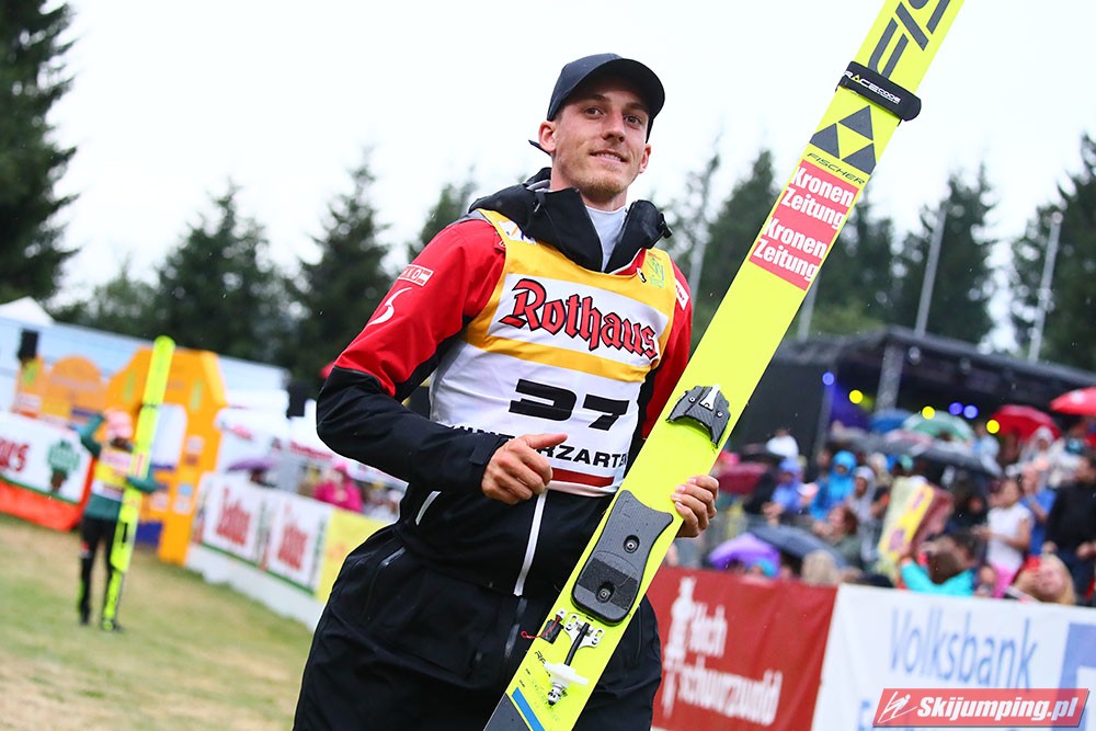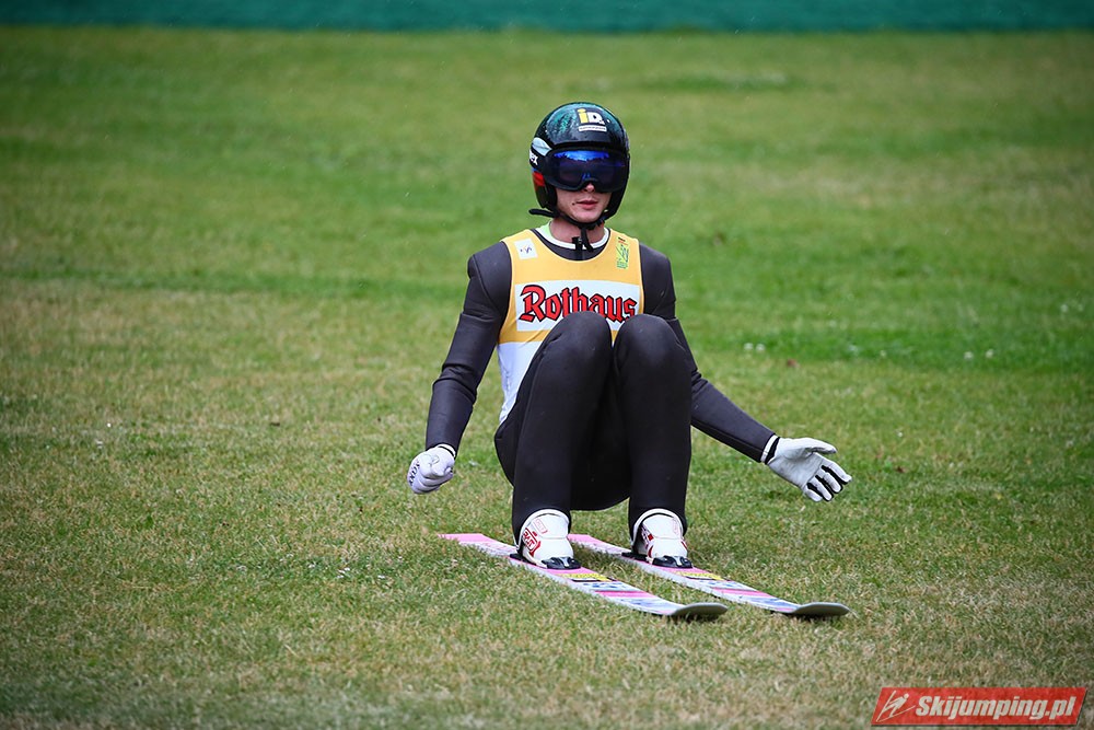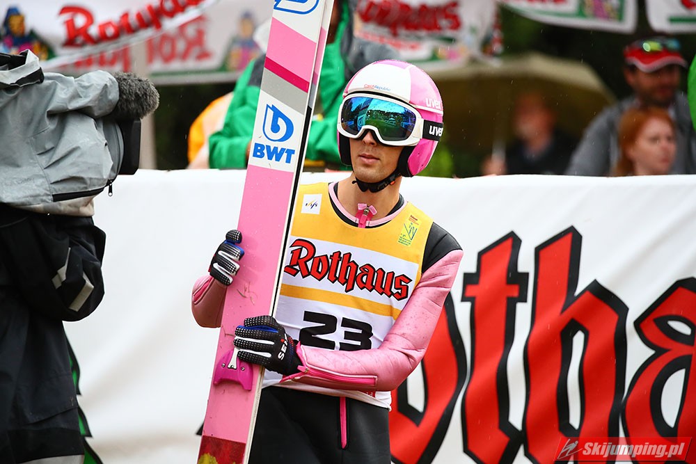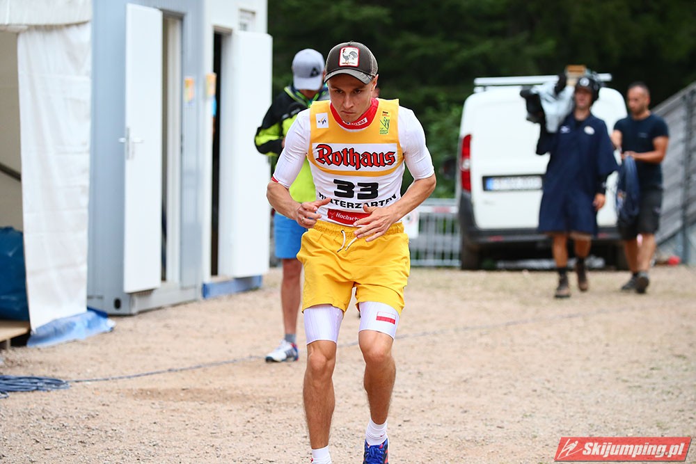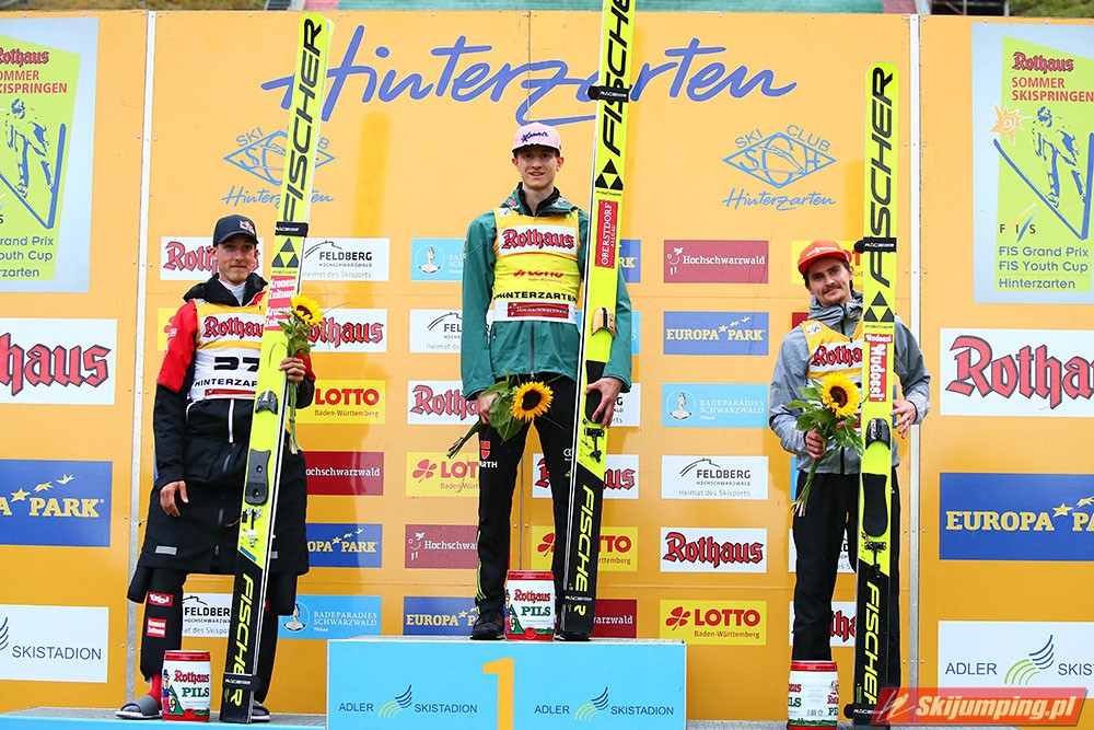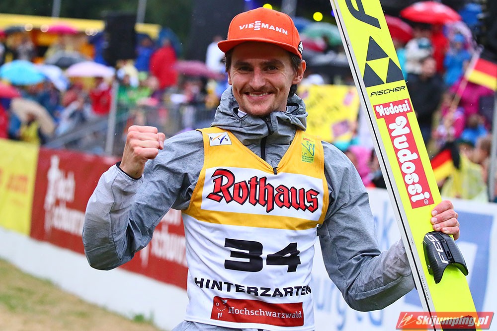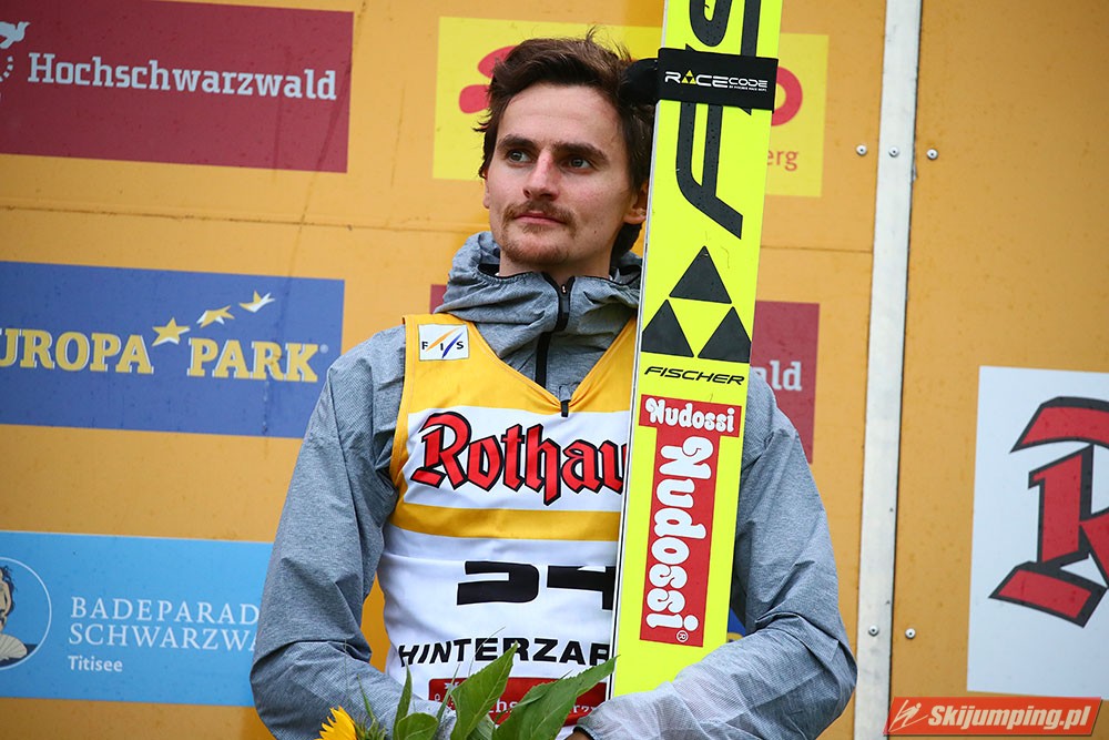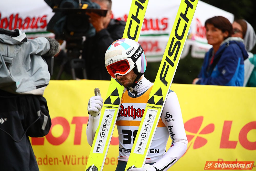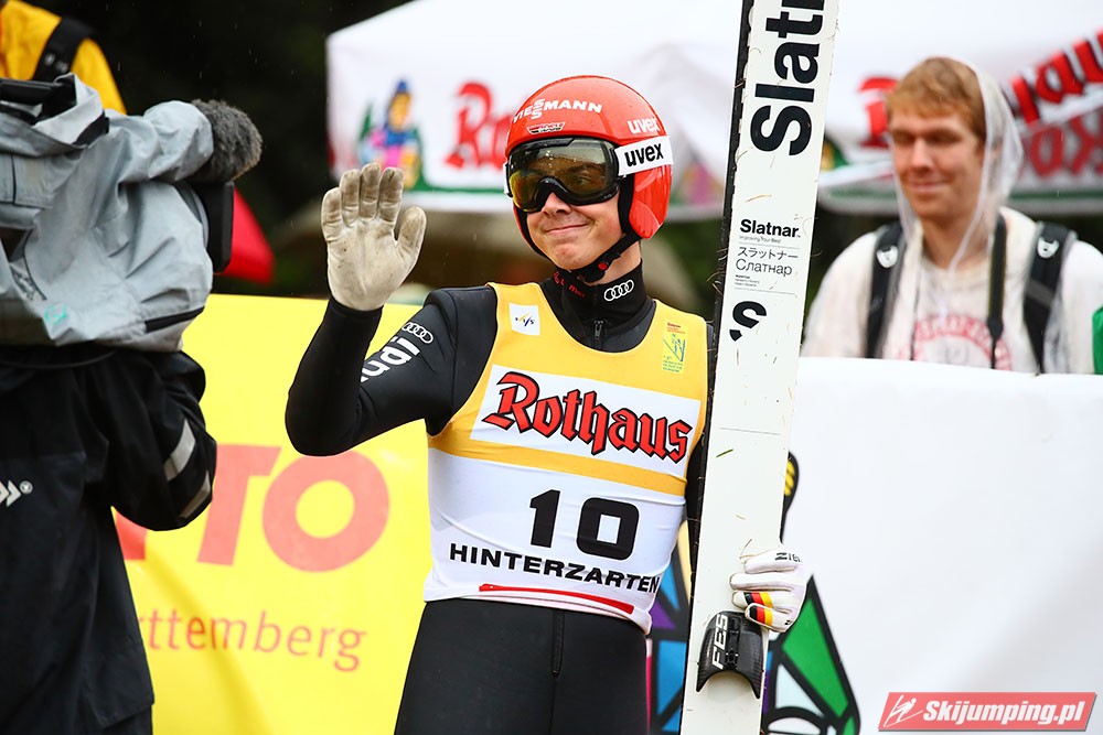 Karl Geiger został zwycięzcą konkursu indywidualnego Letniego Grand Prix na Rothaus-Schanze (HS108) w Hinterzarten. Reprezentant Niemiec oddał skoki na odległość 106 m oraz 99 m i wyprzedził o 0,4 punktu, prowadzącego na półmetku, Gregora Schlierenzauera. Na najniższym stopniu podium stanął kolejny zawodnik gospodarzy, Richard Freitag. W finale wystąpiło pięciu Polaków. Najwyższe miejsce zajął trzynasty Andrzej Stękała.
