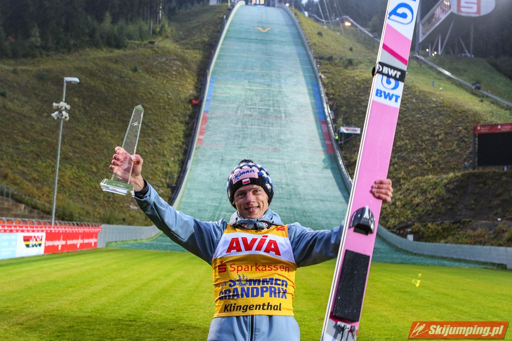 Anze Lanisek został zwycięzcą finałowego, loteryjnego konkursu Letniego Grand Prix 2019 na skoczni w Klingenthal (HS140). Reprezentant Słowenii odniósł wygraną w jednoseryjnysch zawodach dzięki próbie na odległość 139,5 metra. Drugi był Marius Lindvik, który lotem na 148 metr ustanowił nowy letni rekord skoczni. Trzecie miejsce zajął Piotr Żyła (135 m), a piąte - Dawid Kubacki (131,5 m), który tym samym odniósł zwycięstwo w całym cyklu. Polacy w komplecie znaleźli się w czołowej trzydziestce.