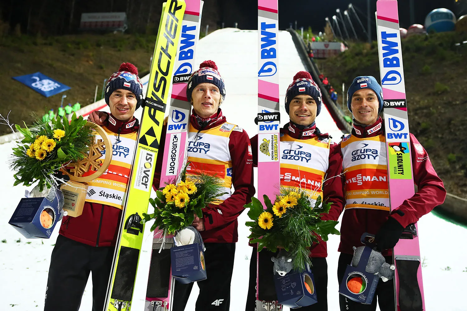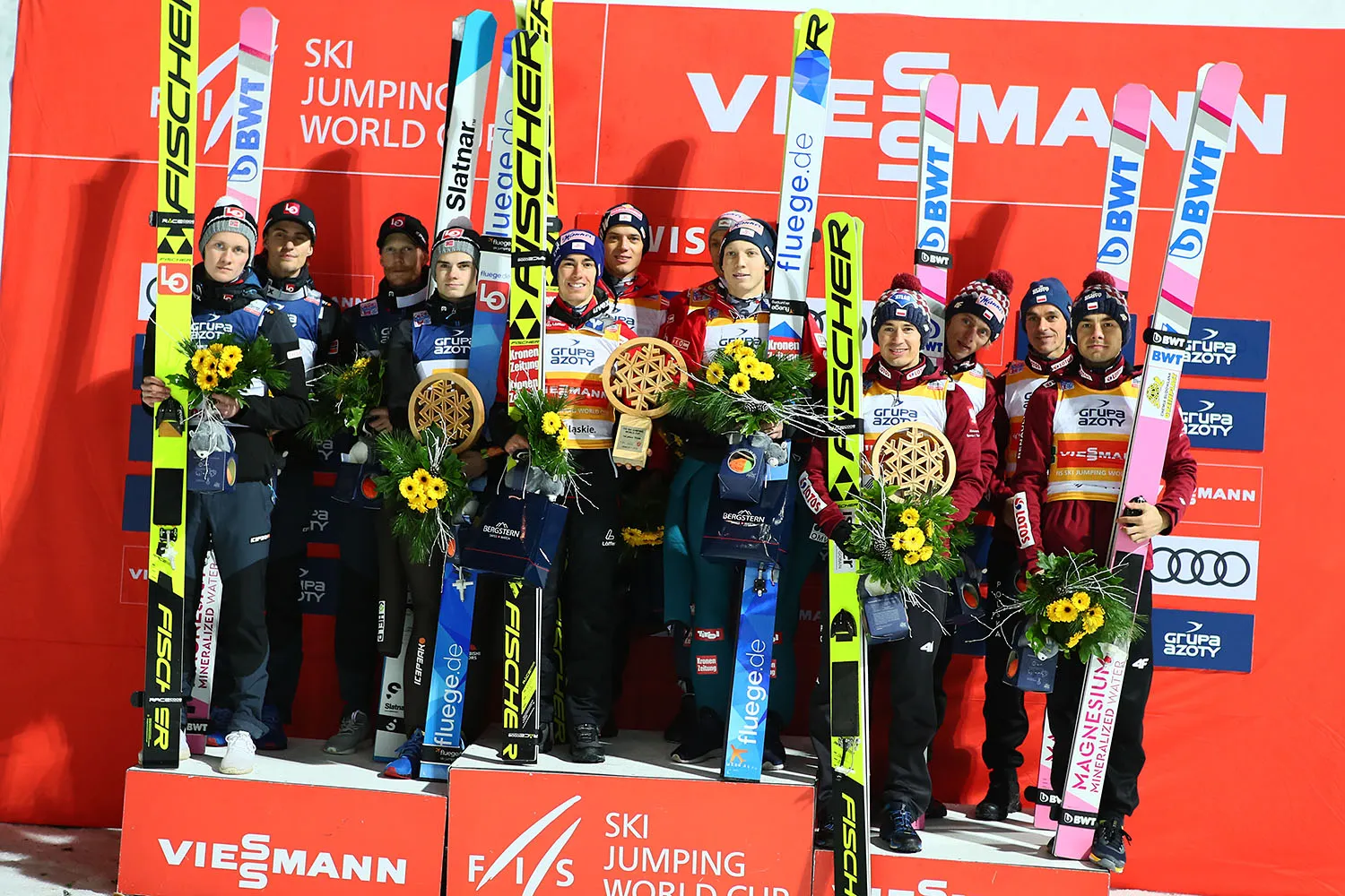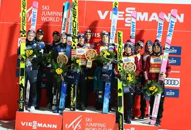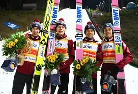 Polacy po raz dwudziesty szósty stanęli na podium zawodów drużynowych Pucharu Świata. Biało-Czerwoni mają w swoim dorobku sześć wygranych, dziesięć drugich oraz dziesięć trzecich pozycji.