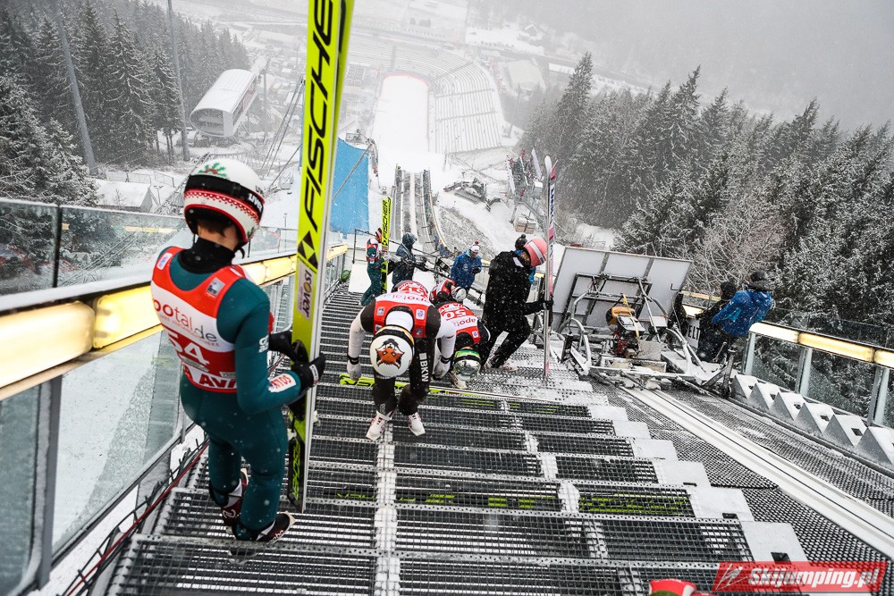 A może to nowe buty rozregulowały naszych skoczków? Ok, były testowane wcześniej, ale ostateczna zmiana z Rassów nastąpiła przez sezonem zimowym. Kamil za bardzo nie wie co się dzieje, lata wyjątkowo pasywnie. Pytanie na ile, to jest efekt zmiany pozycji najazdowej. Kuba po 38 miejscu w qualach mówi, że skok był bardzo dobry, i nie wie dlaczego nie przyniosło to efektu w postaci dobrej odległości. Piotrek i Dawid może nieco zaprzeczają mojej teorii, ale ich skoki nadal są niestabilne.