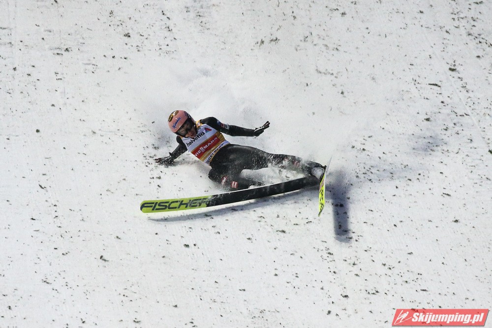 Upadek po skoku na odległość 125,5 metra zaliczył Stefan Kraft. Dotychczasowy lider Pucharu Świata ukończył niedzielne zawody na osiemnastej pozycji.