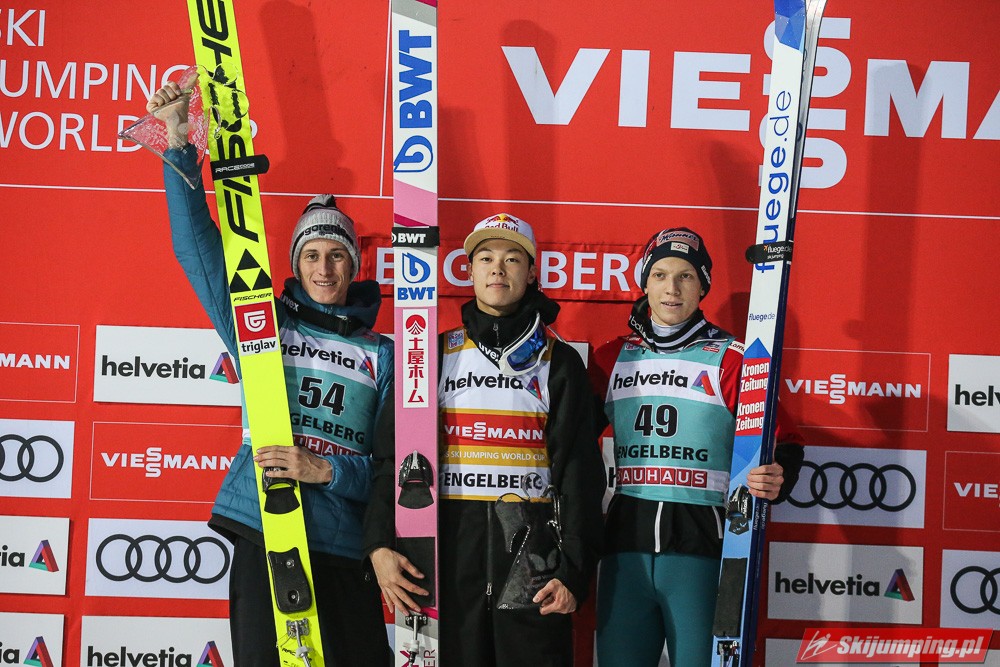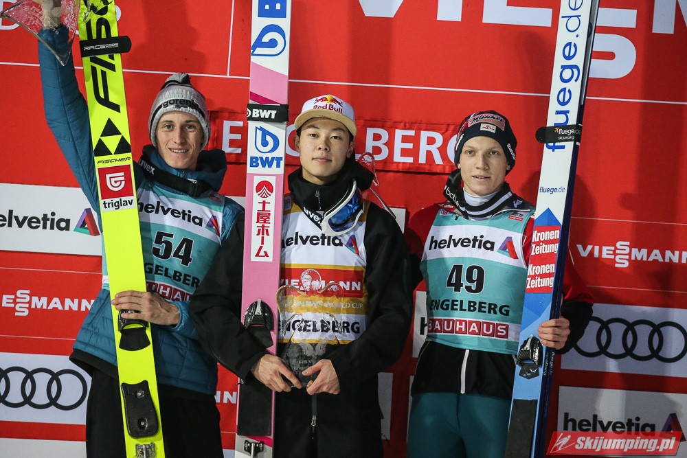 Ryoyu Kobayashi został zwycięzcą loteryjnego, niedzielnego konkursu Pucharu Świata na Gross-Titlis-Schanze (HS140) w Engelbergu. Obrońca Kryształowej Kuli triumfował po skokach na odległość 132,5 metra oraz 134 metrów. Drugi był Peter Prevc, a trzeci Jan Hoerl. Dziewiąte miejsce zajął Kamil Stoch. Pucharowe punkty zdobył także Stefan Hula.